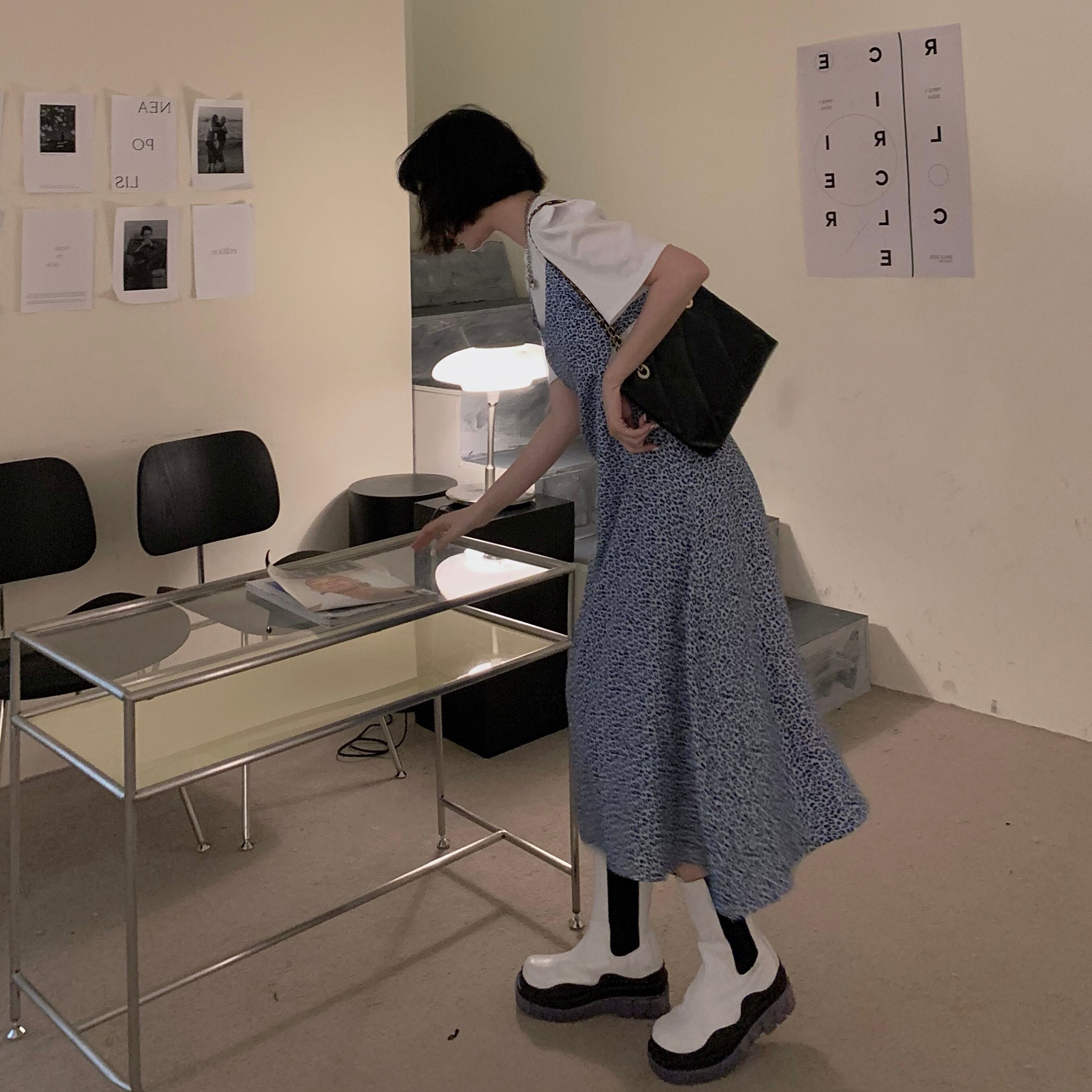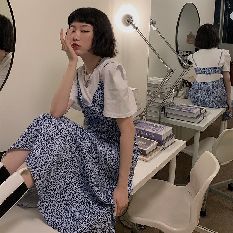 スタンダードレオパードプリント柄ドレス レディースサマールーズホワイトTシャツ レトロ 夏物 クレセントシティ10239810748