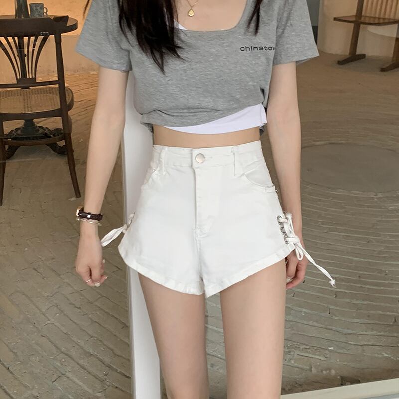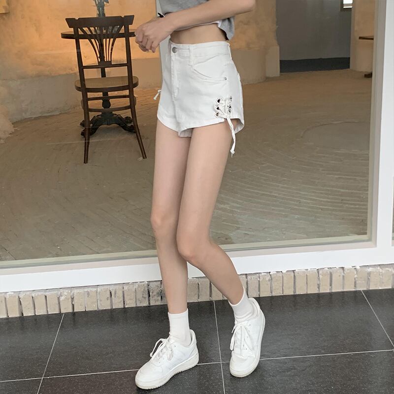 ホワイトショーツ バンドウェスト薄手Aラインワイドレッグパンツ ブルマー ワイドパンツ クレセントシティ64816786523