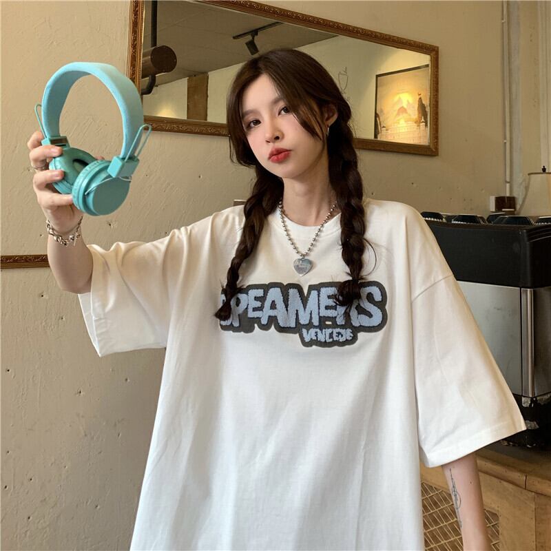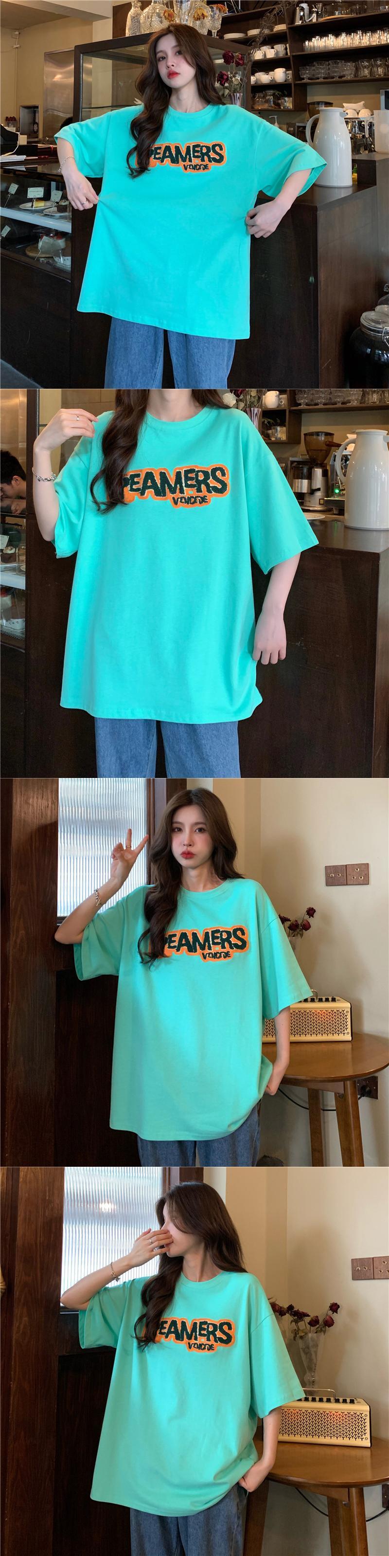 プリントルーズTシャツ レディースサマーカジュアルロングラウンドネックトップス 夏物 Oネック クレセントシティ77212866380
