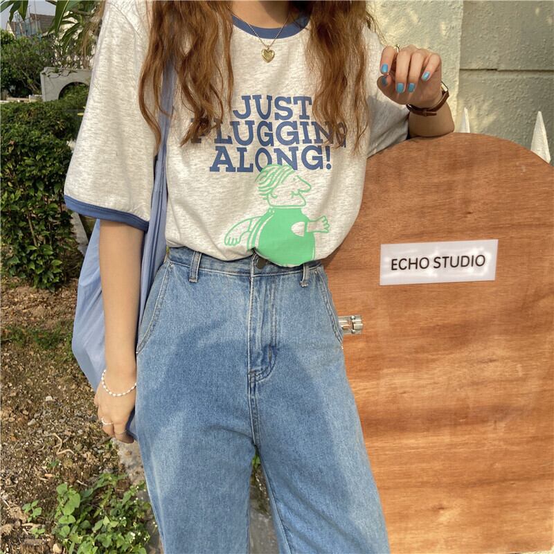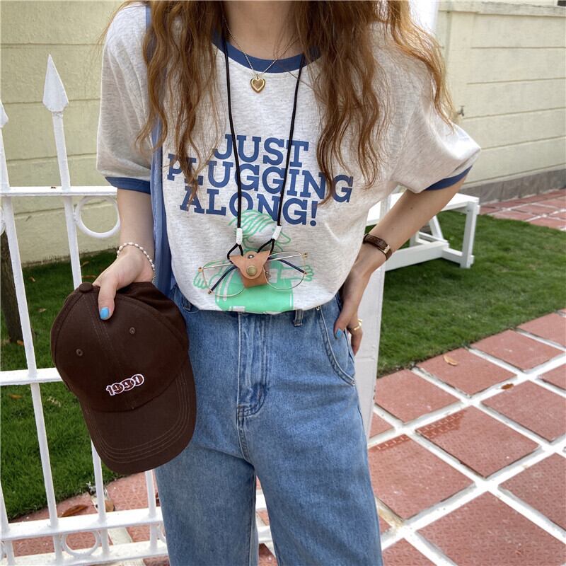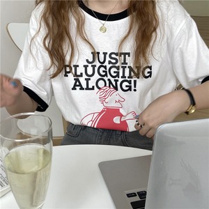 プリント柄カラーTシャツ サマールーズカジュアルラウンドネックトップス 夏物 Oネック クレセントシティ12704892148