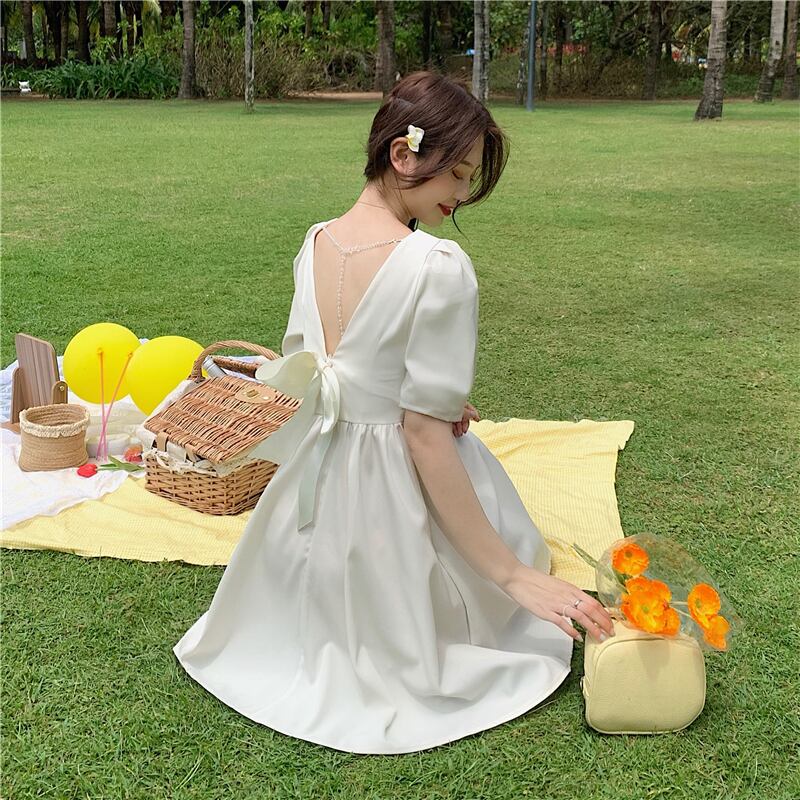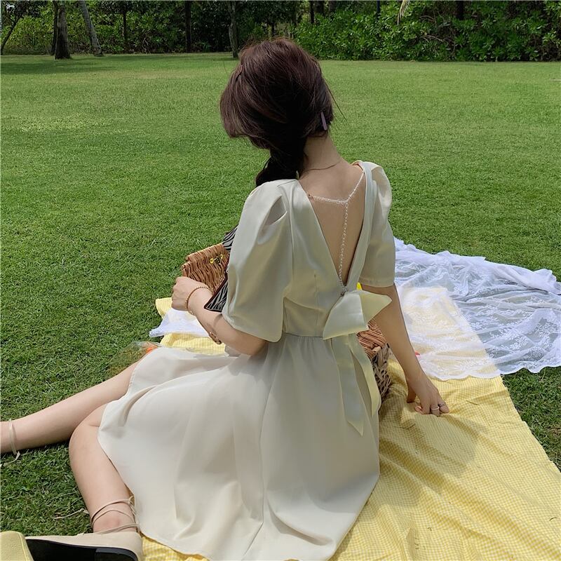 ホルターウェスト薄手ドレス サマーAラインスカート リボン 夏物 クレセントシティ55464455042