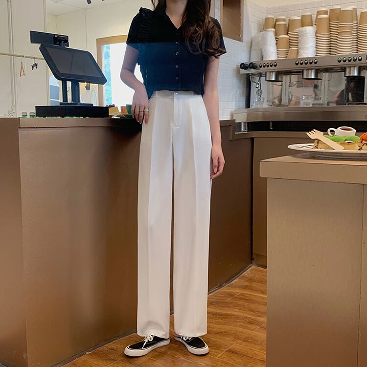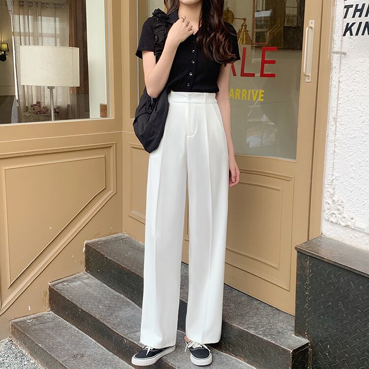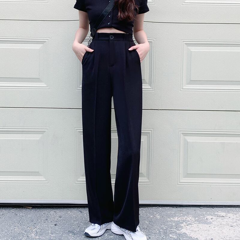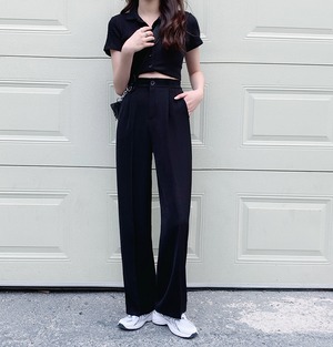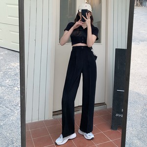 ブラックパンツ サマーカジュアルハイウェスト薄手 夏物 クレセントシティ12814762927