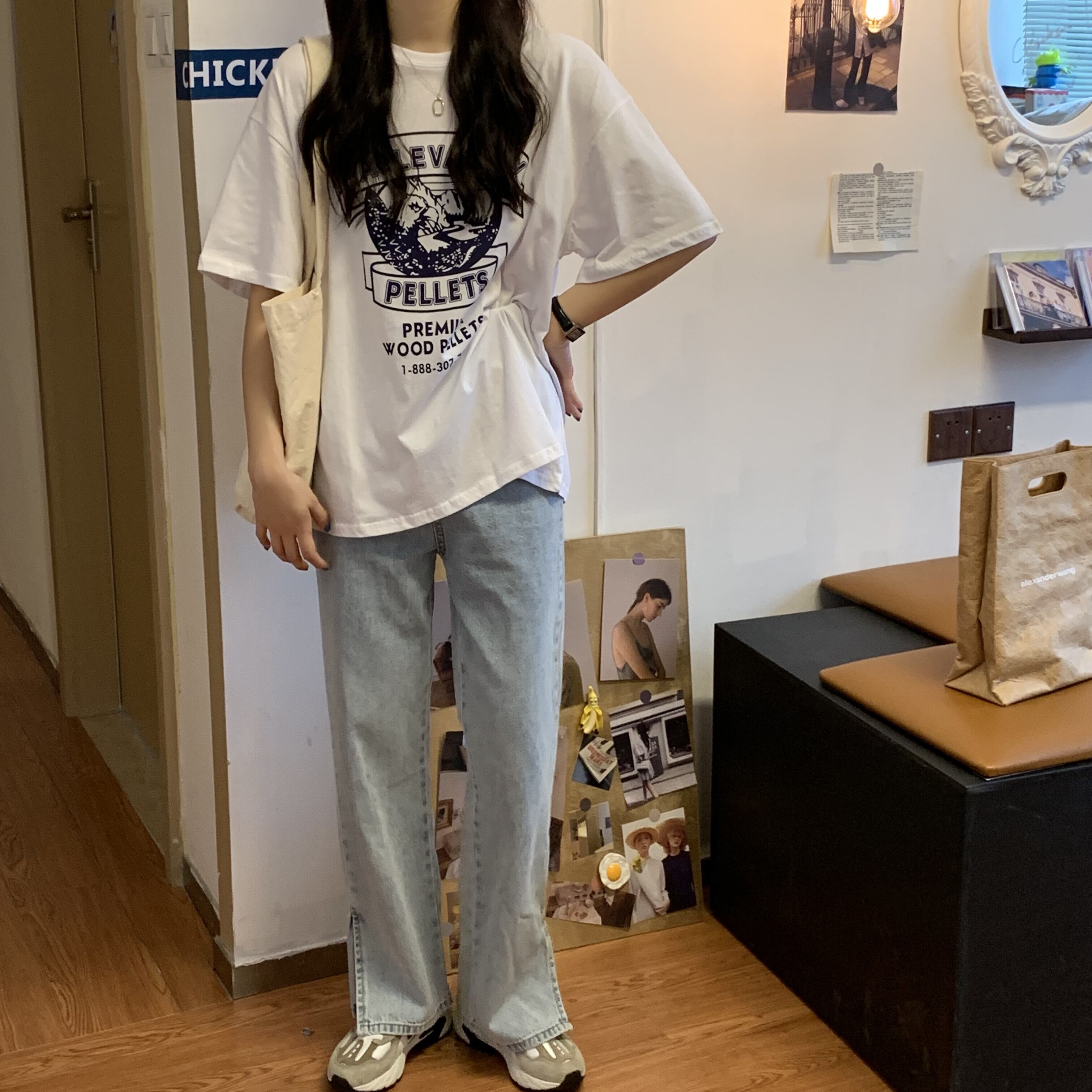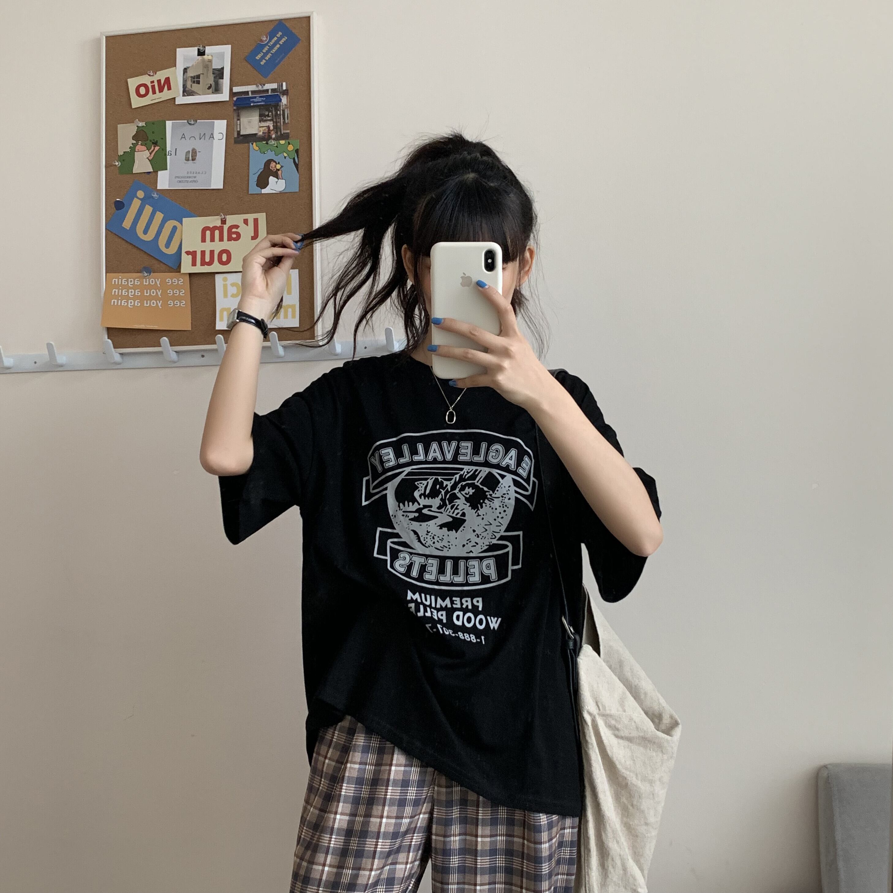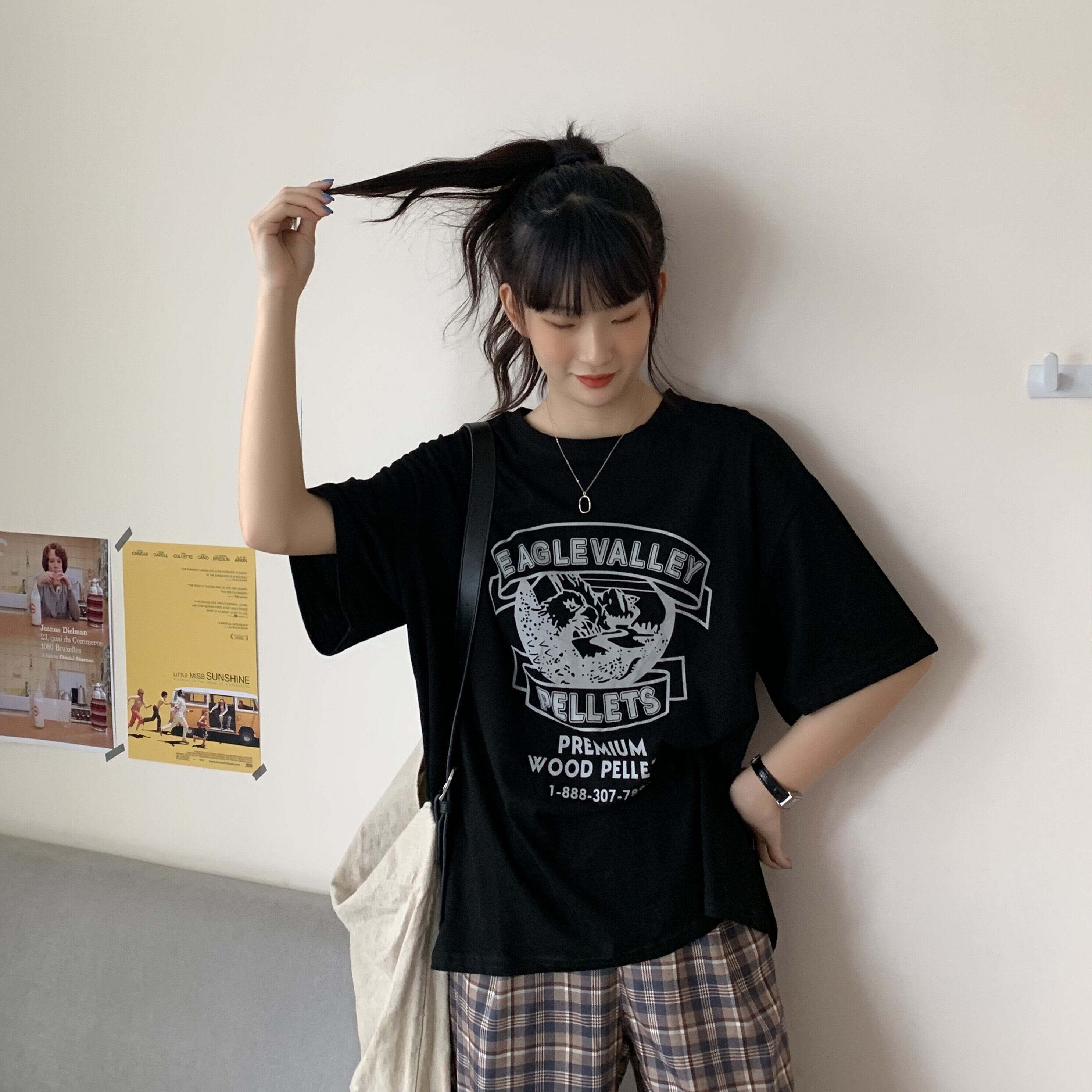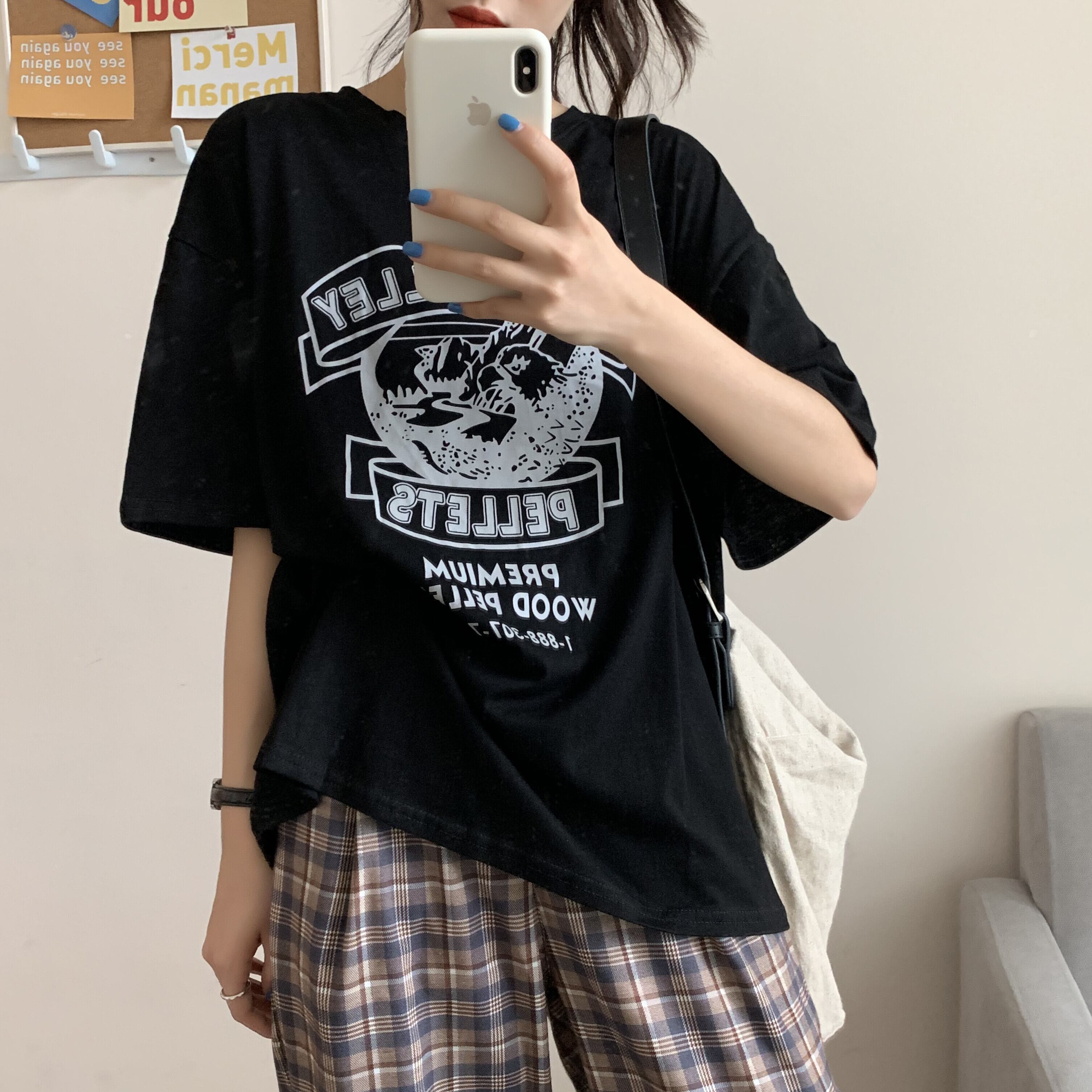 ブラックTシャツ サマールーズ薄手プリントトップス 夏物 クレセントシティ70369590241