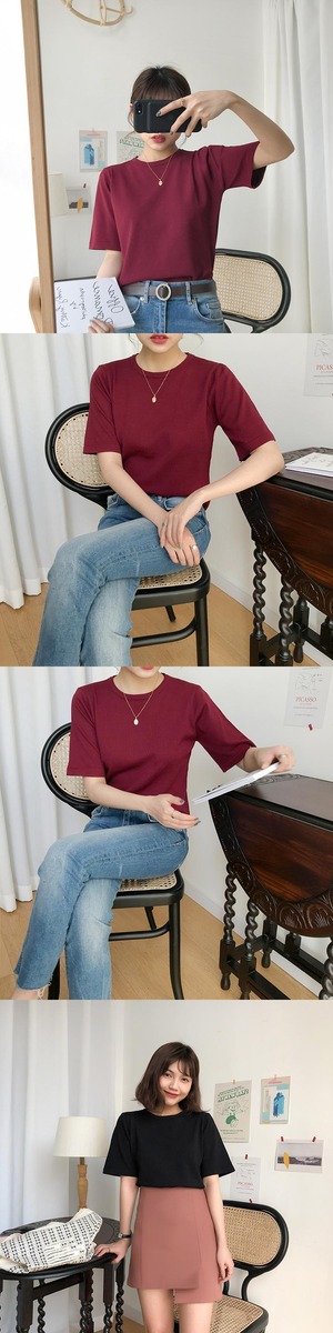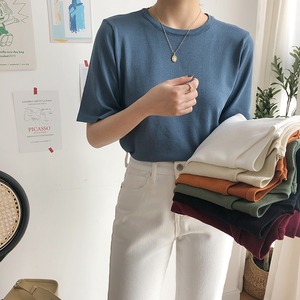 ベーシックTシャツ シャツ サマールーズソリッド カラーラウンドネックスタイルトップス 夏物 Oネック ソリッドカラー クレセントシティ96371078299