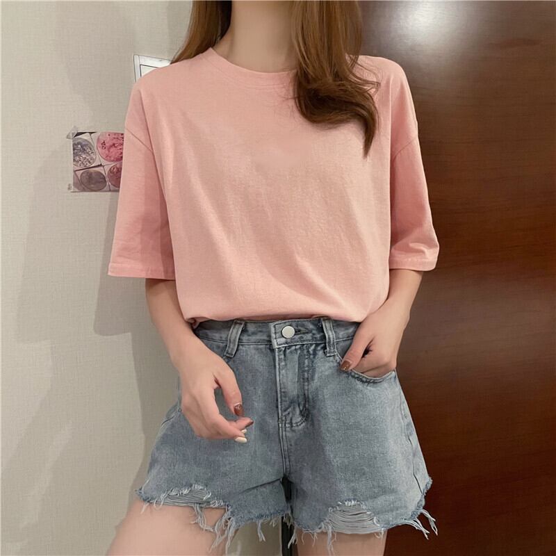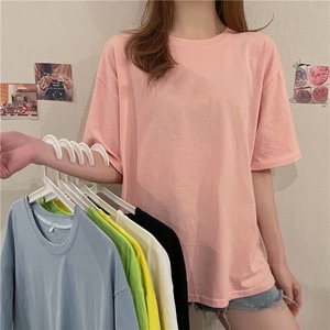 Tシャツ サマールーズカジュアルソリッド カラーラウンドネックトップス 夏物 Oネック ソリッドカラー クレセントシティ75144799186