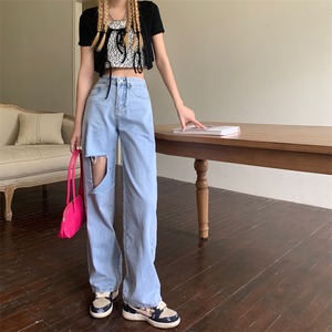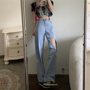 ジーンズ サマールーズハイウェストパンツ レッド 夏物 クレセントシティ55068755839