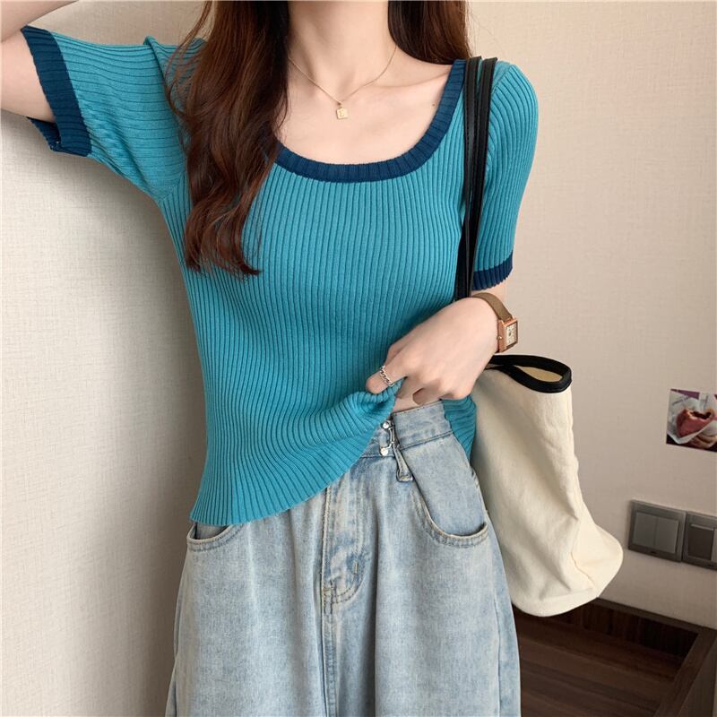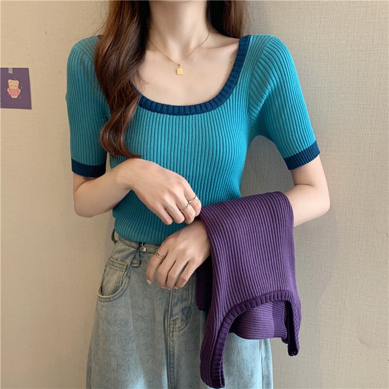 カラーTシャツ レディースサマースリム薄手ニットトップス 夏物 クレセントシティ15067202667