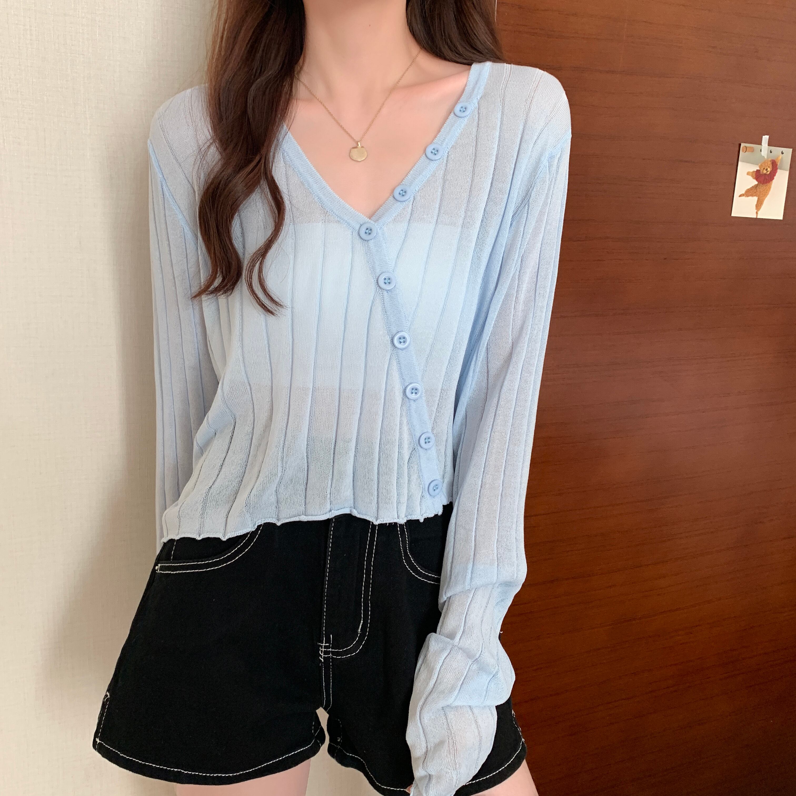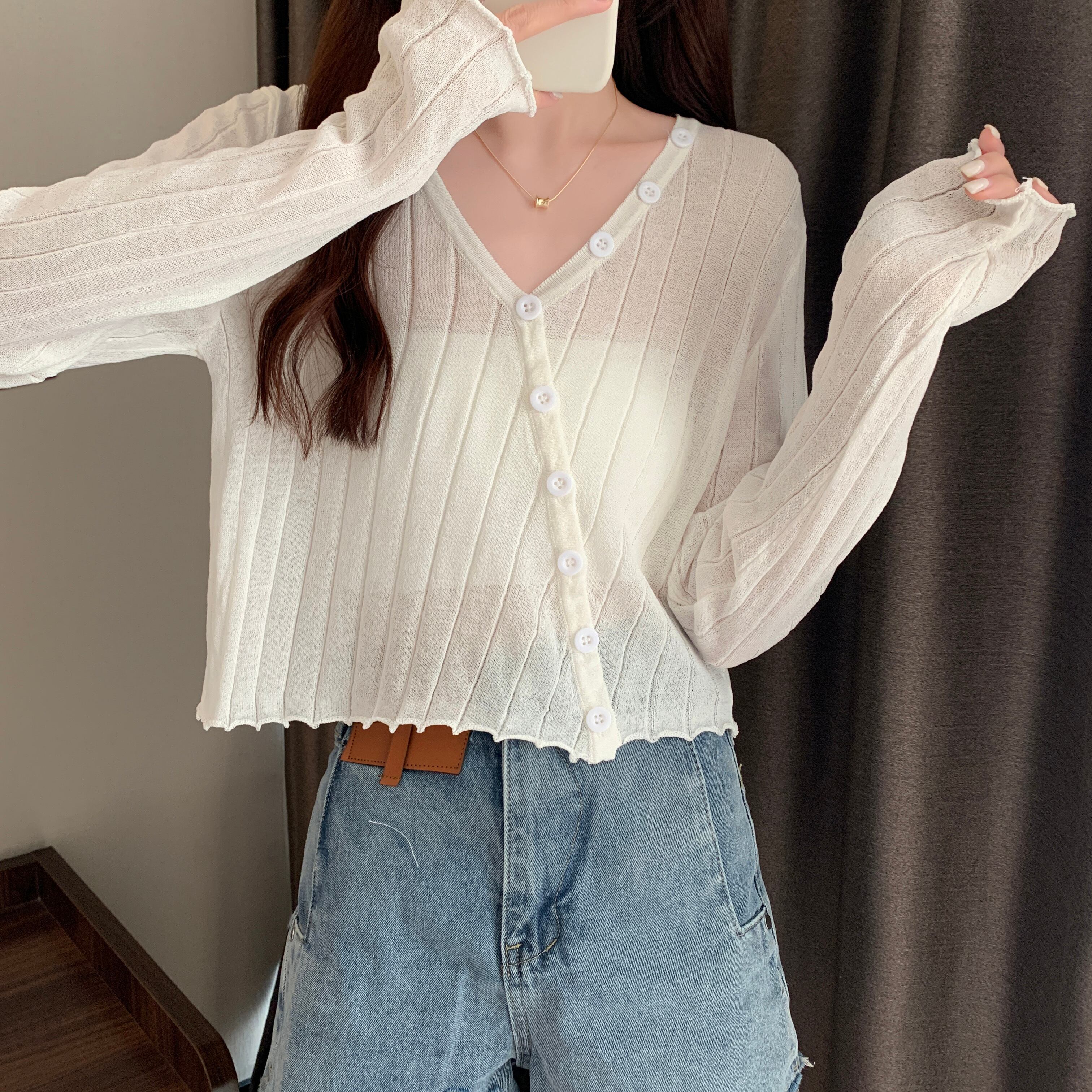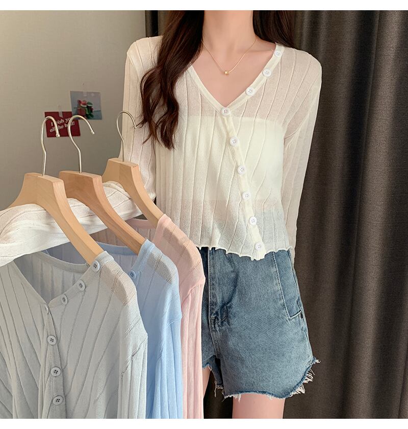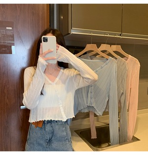 カラー薄手カーディガンサマールーズニットショートトップス ロング 夏物 シルク クレセントシティ99793667045