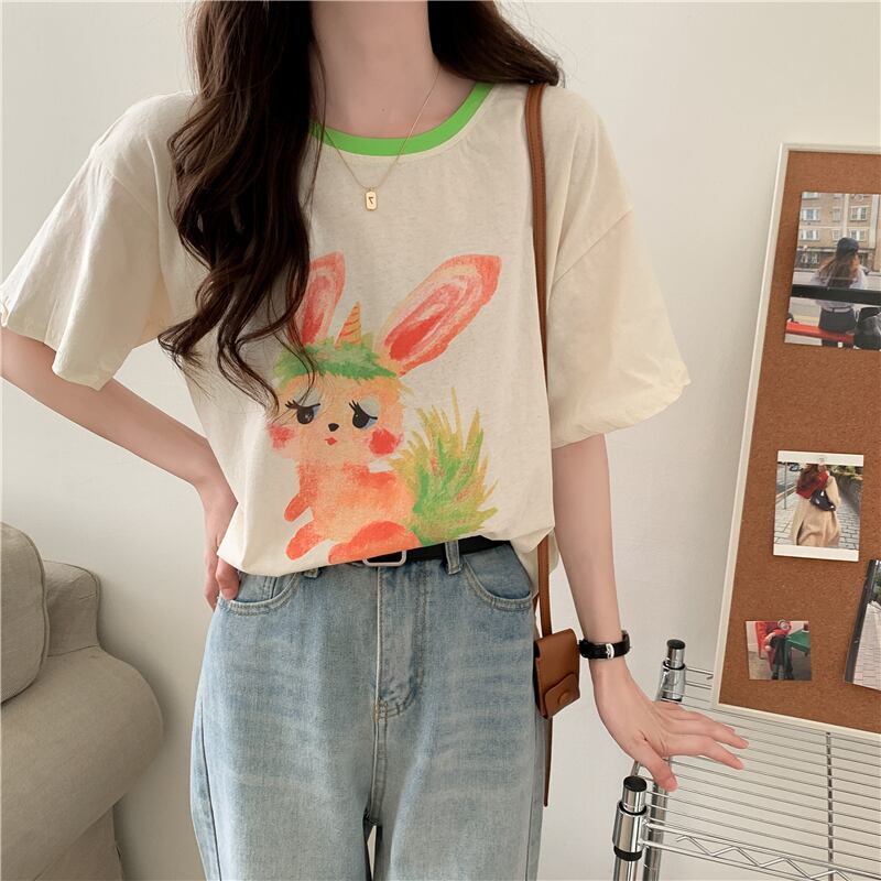 プリントTシャツ サマールーズカジュアルカラーラウンドネックトップス 夏物 Oネック ステッチ クレセントシティ12555736457