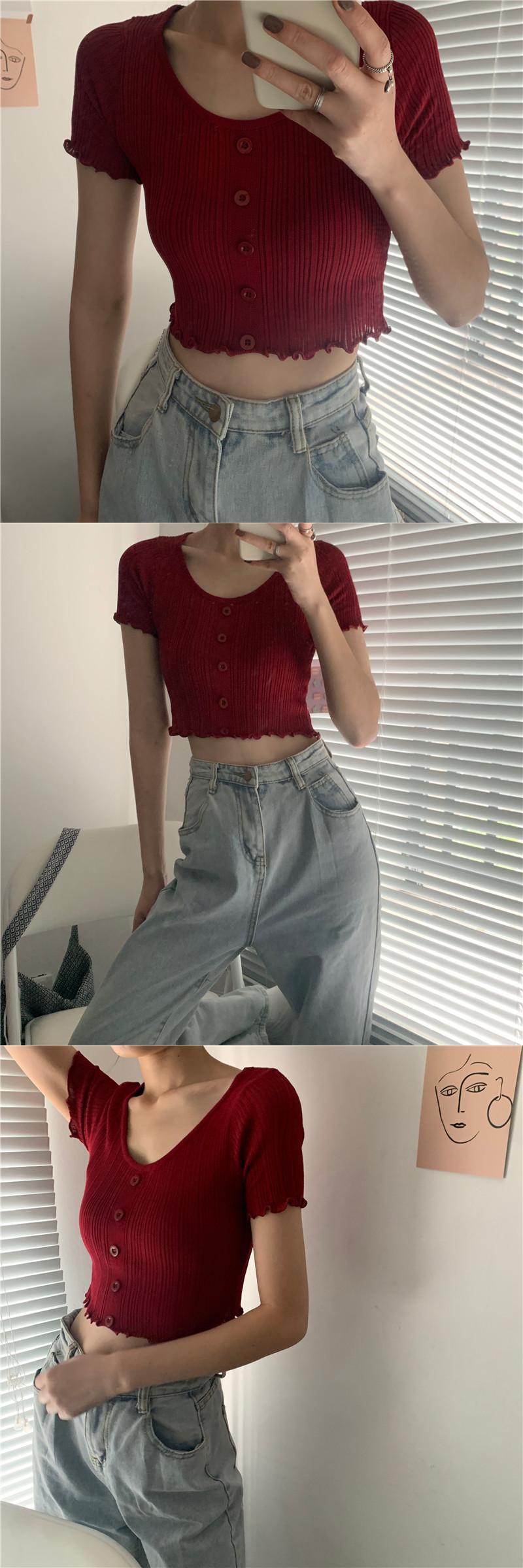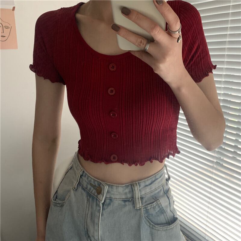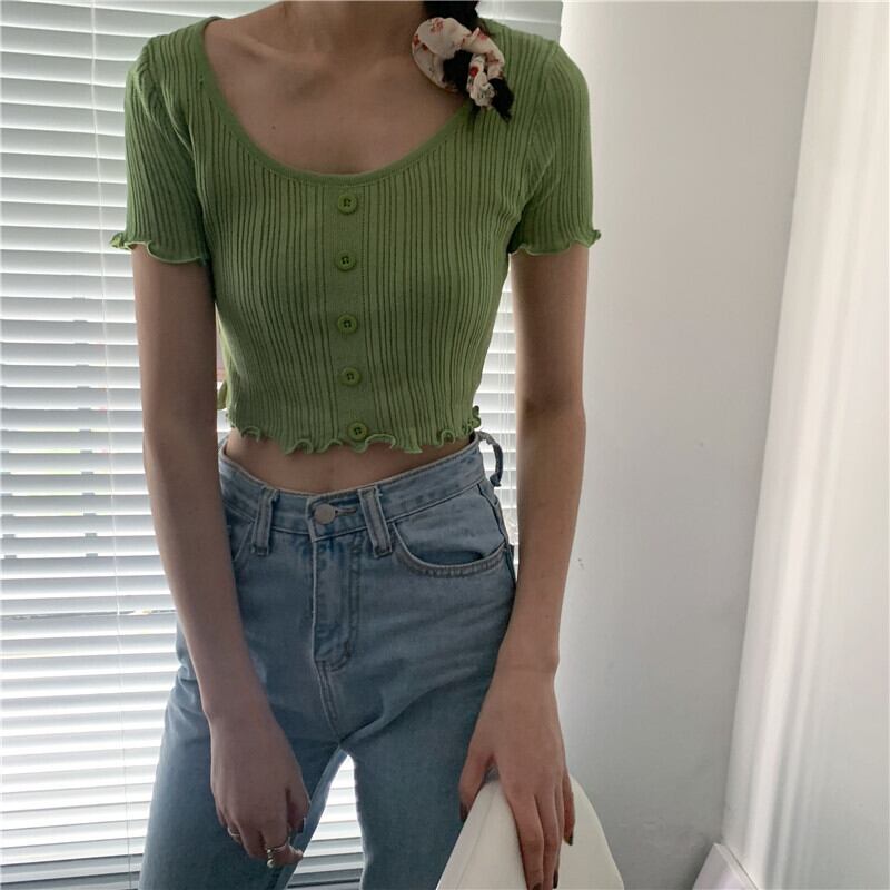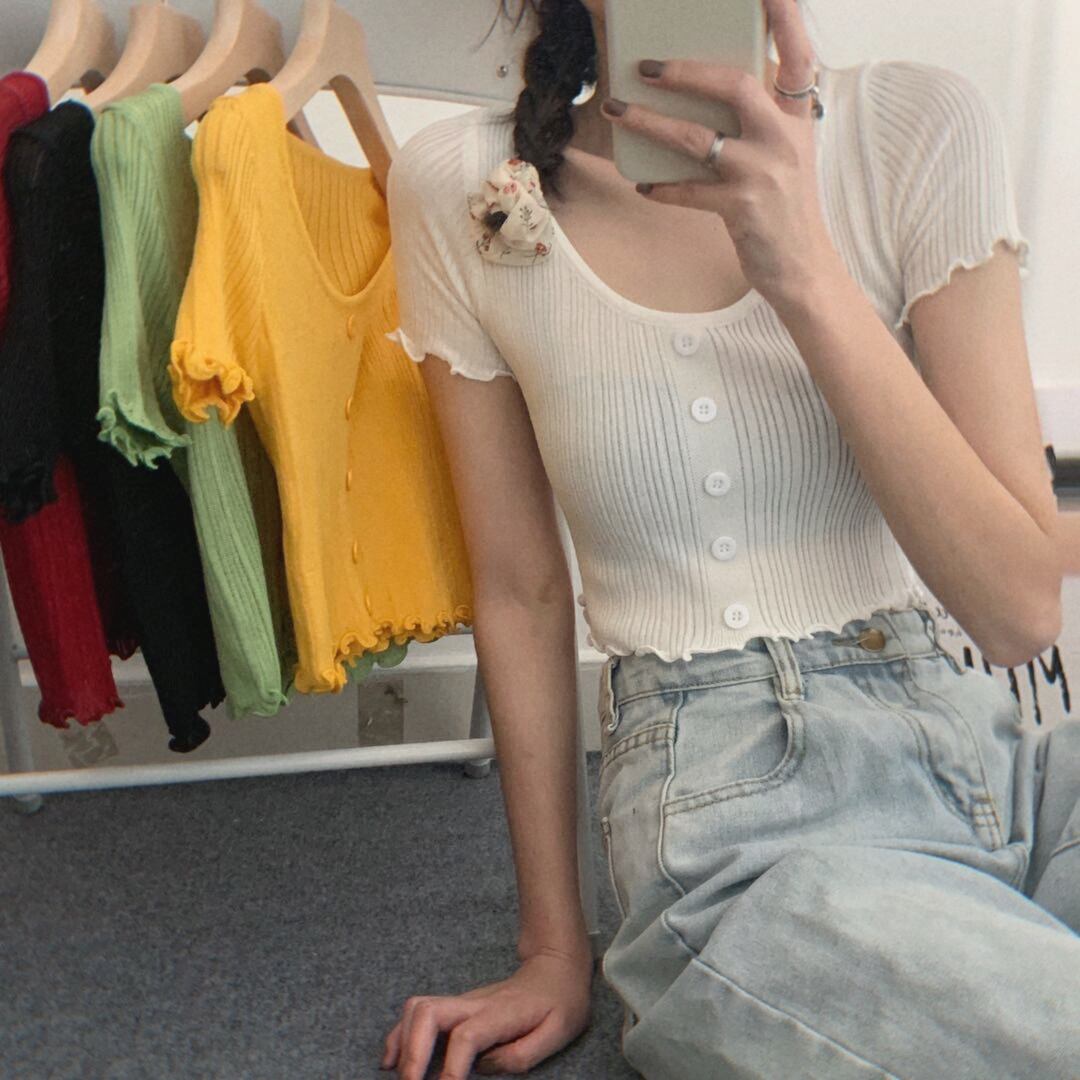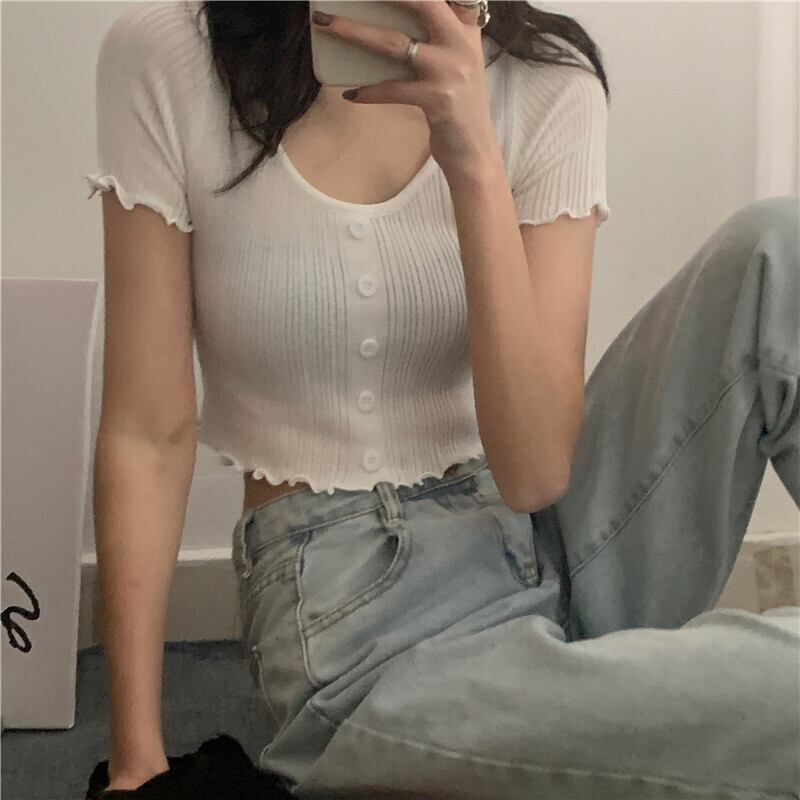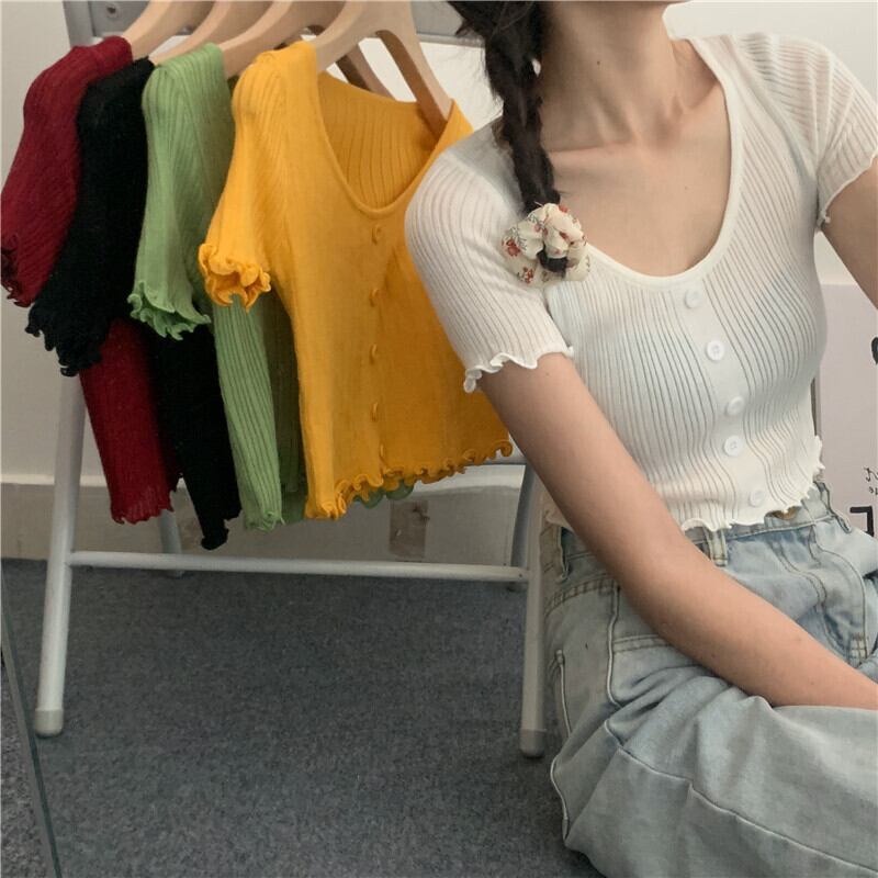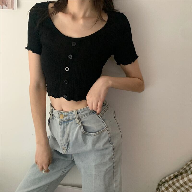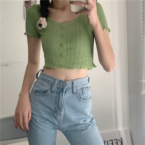 ショートTシャツ サマースリム薄手ブラックニットトップス 夏物 クレセントシティ87504180694
