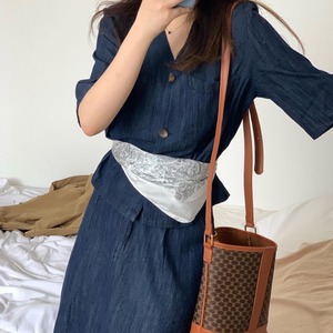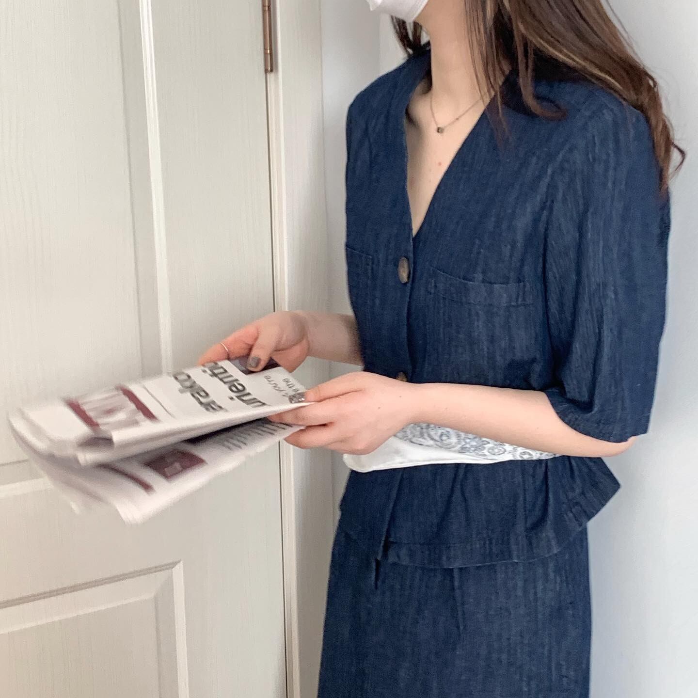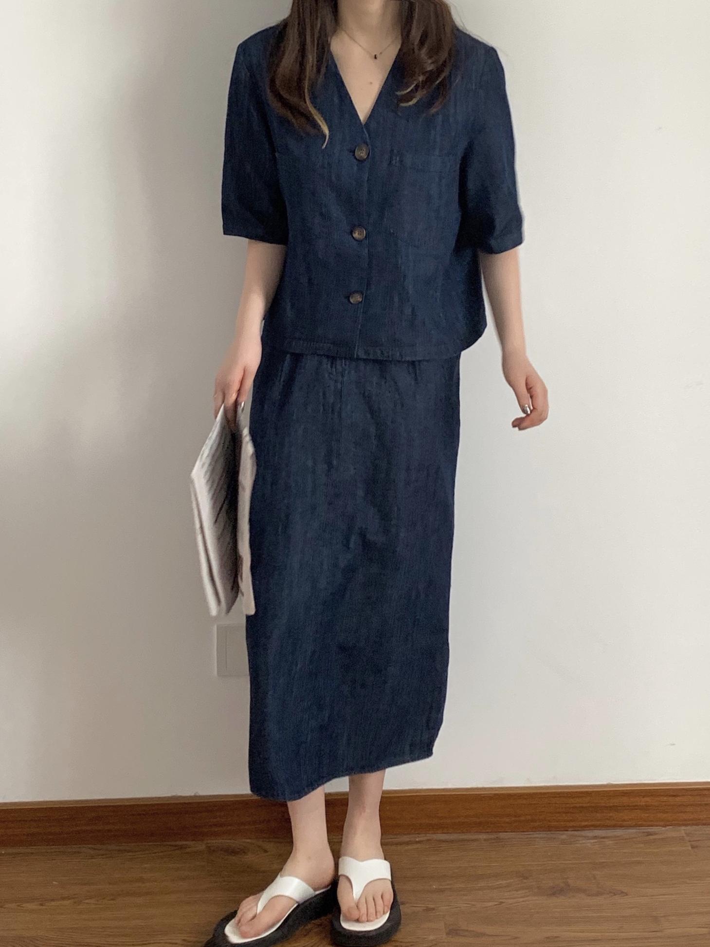 サマー薄手シャツ ハイウェストウェストAラインスカート 夏物 クレセントシティ29814709976