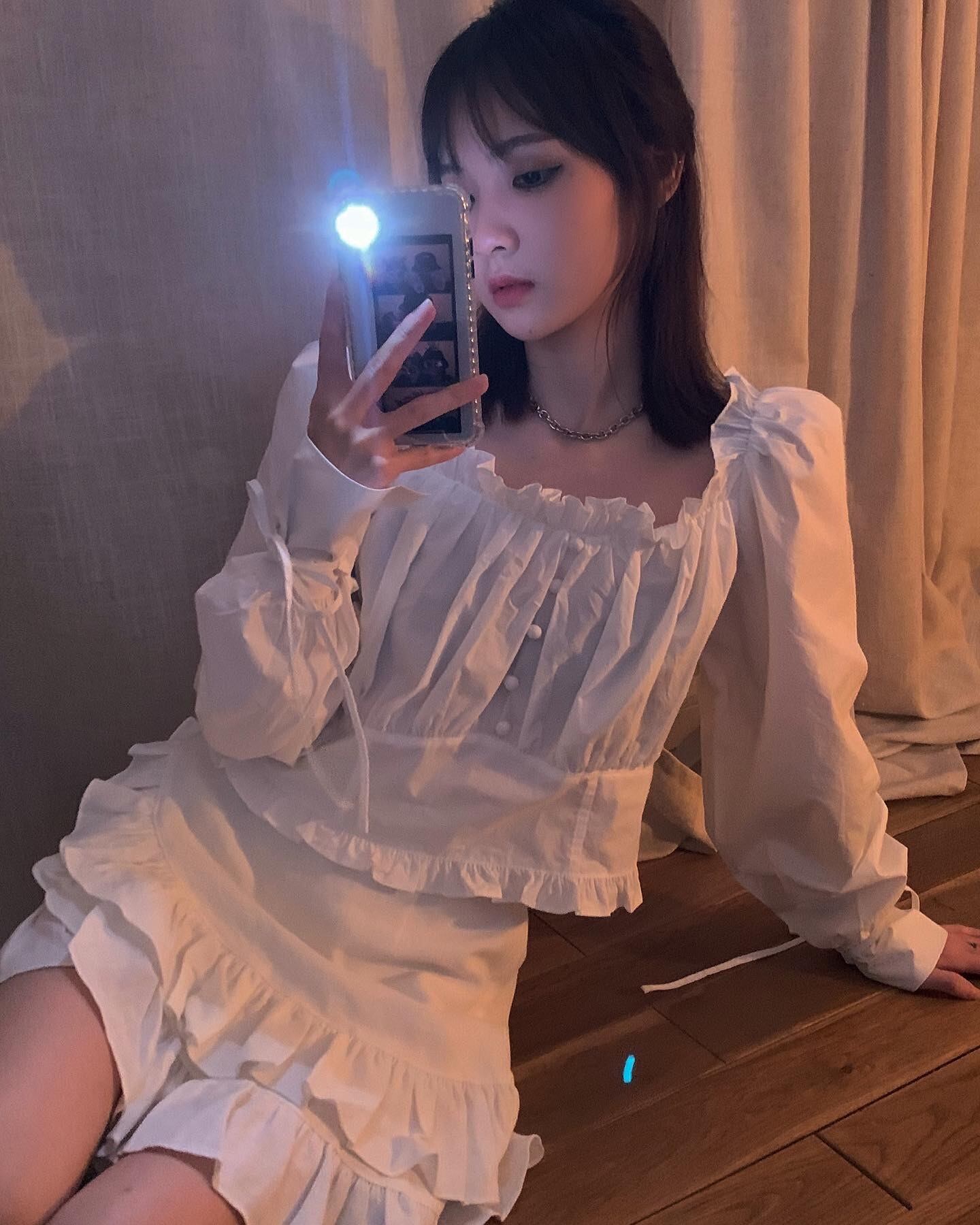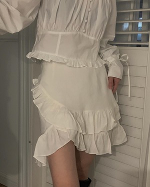 サマースリムホワイトシャツ ハイウェストウェスト薄手Aラインスカート 夏物 クレセントシティ35731663011