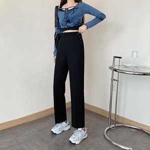 ブラックパンツ サマールーズ薄手ハイウェストウェストカジュアル 夏物 クレセントシティ20604075008