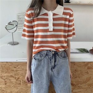 カラーストライプショートセーター レディースサマールーズTシャツ 夏物 クレセントシティ31023798873