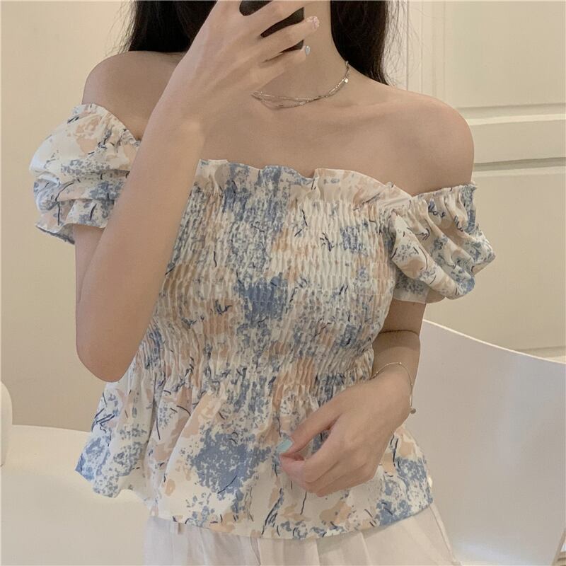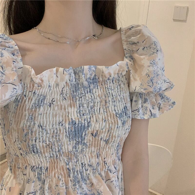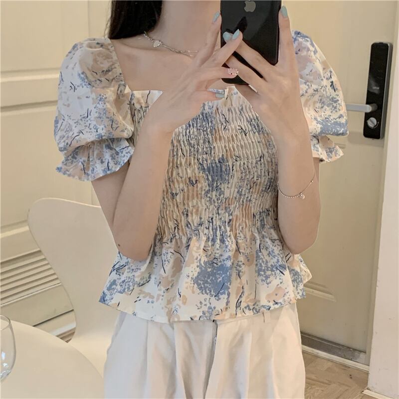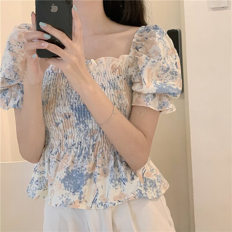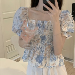 シャツ サマースタイルスリーブカラー薄手ショートプリーツシフォントップス 大人ガーリー スウィート キュート カジュアル 夏物 スクウェア クレセントシティ73781849926
