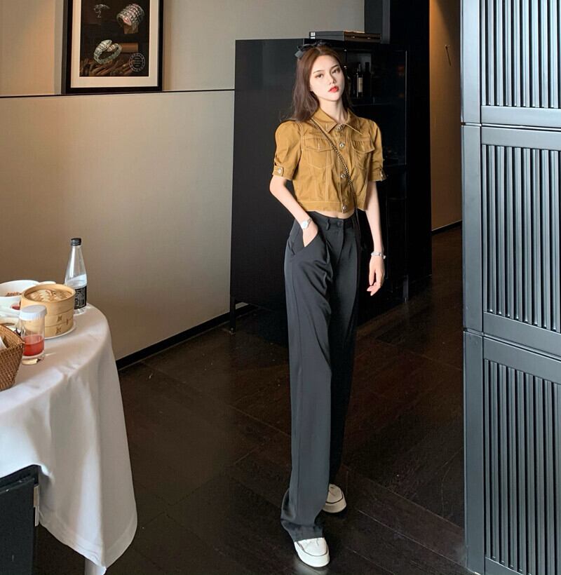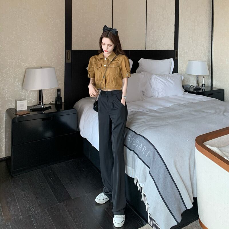 サマーショートジャケット ハイウェストウェストルーズ薄手カジュアルパンツ 夏物 クレセントシティ89380563112