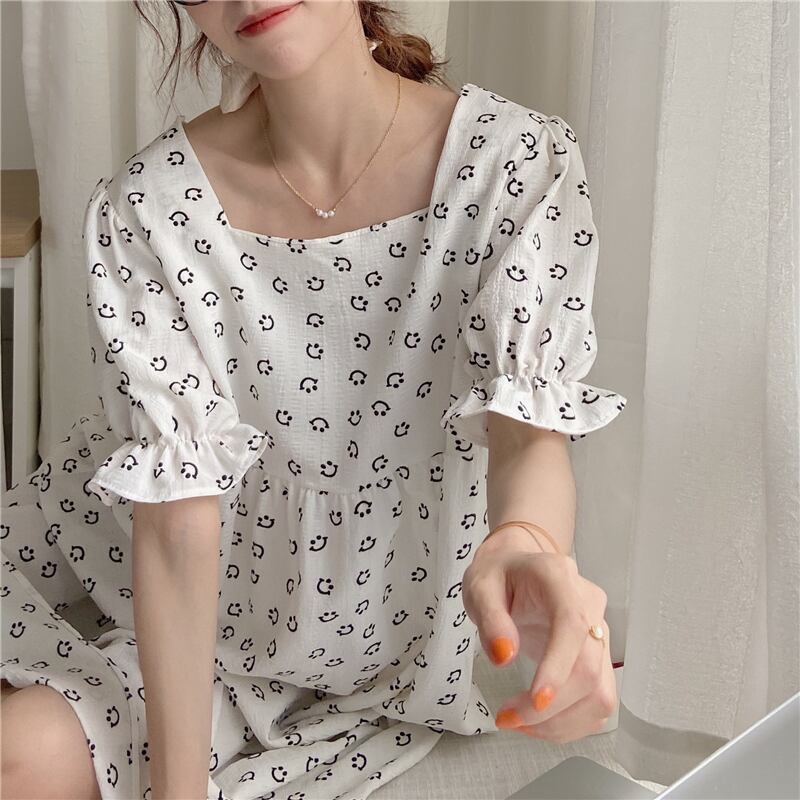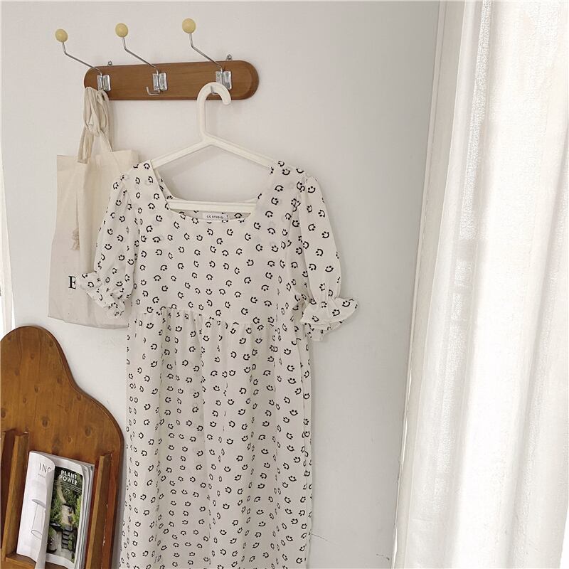 プリントドレス レディースサマー薄手ルーズハイウェストロング 大人ガーリー スウィート キュート カジュアル 夏物 スクウェア クレセントシティ23162485397