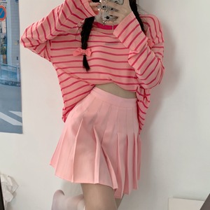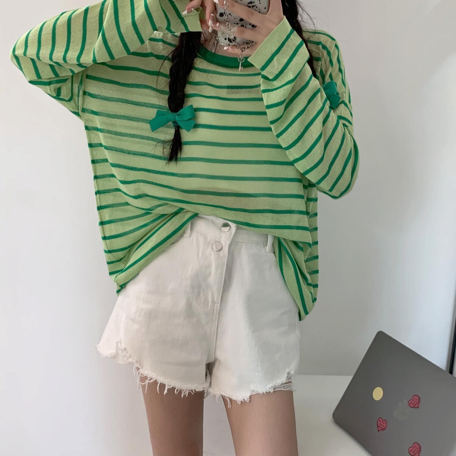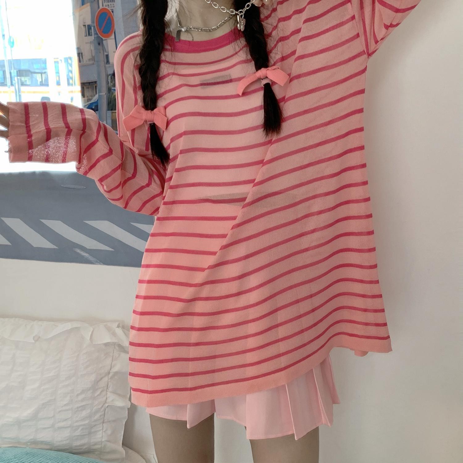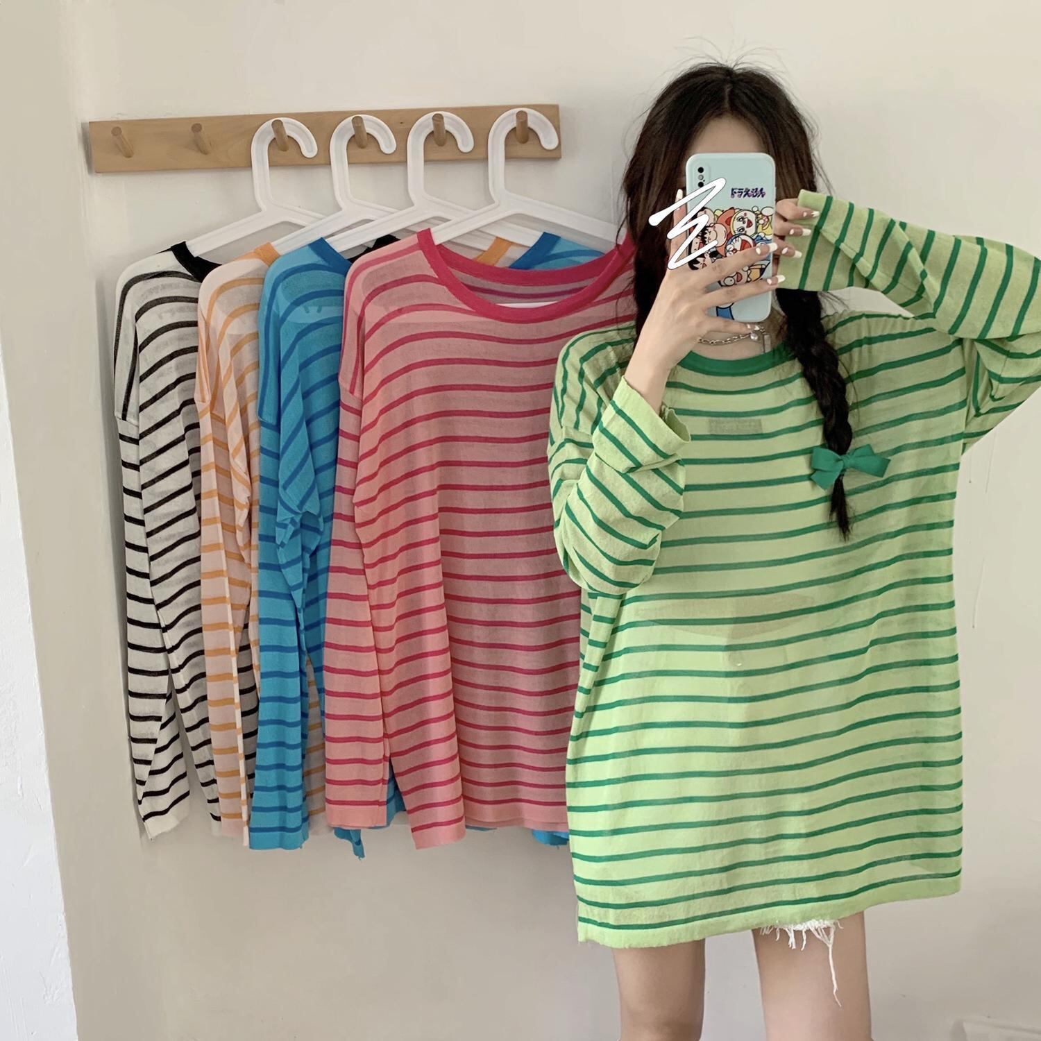 ストライプニットシャツ レディースサマールーズプルオーバー Tシャツ ロング 夏物 クレセントシティ73057647711