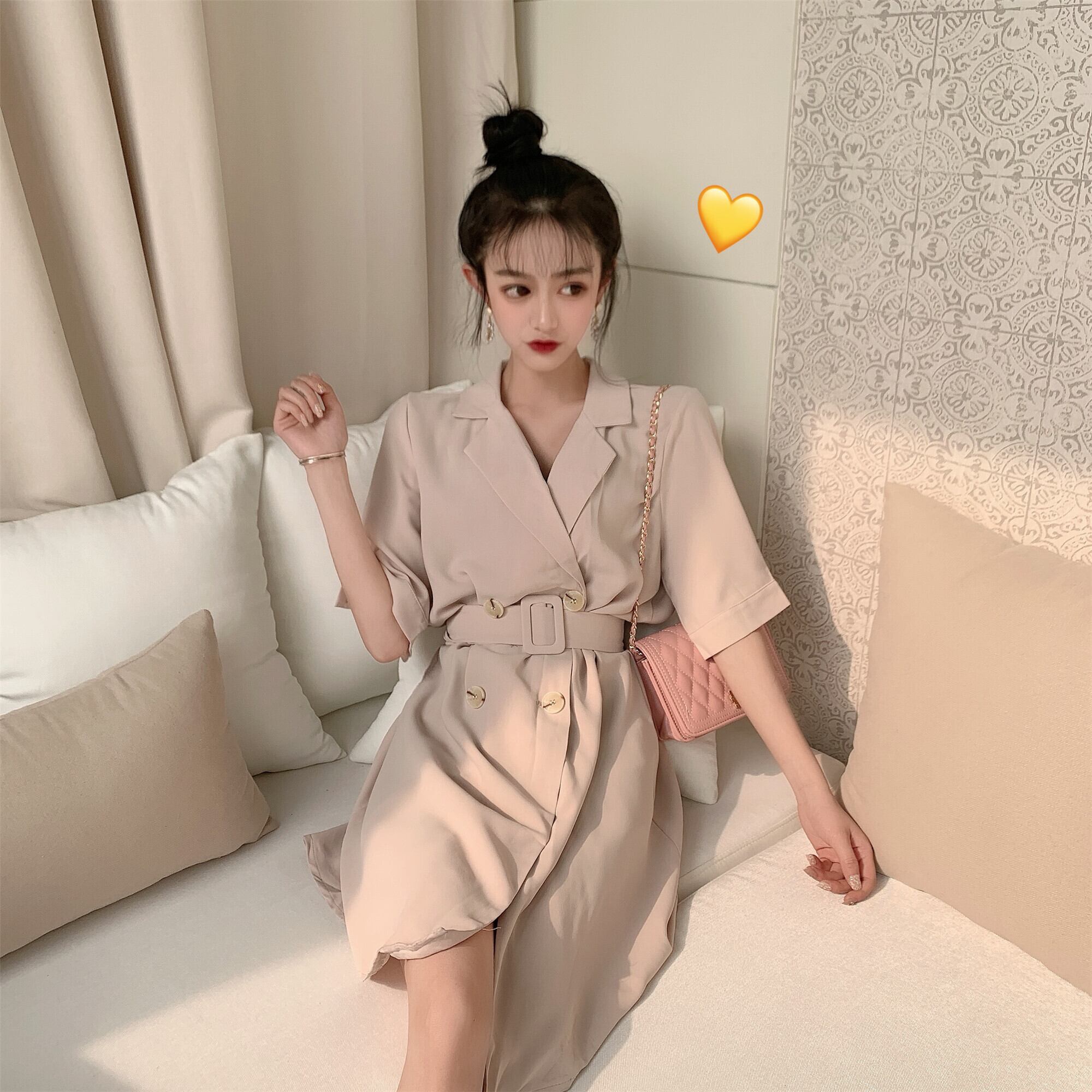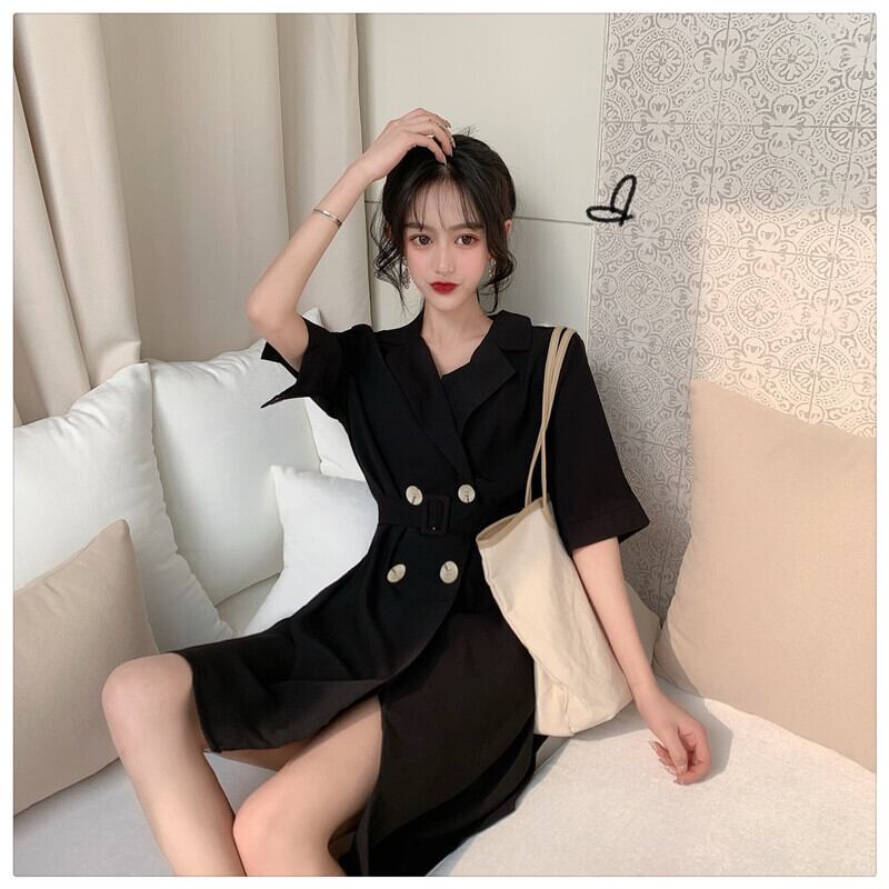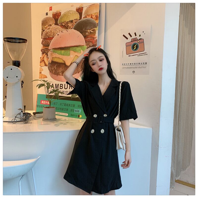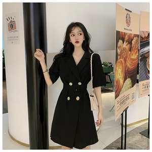 ダブルブレストウェストドレス サマースタイルルーズブラック 夏物 クレセントシティ1242026461