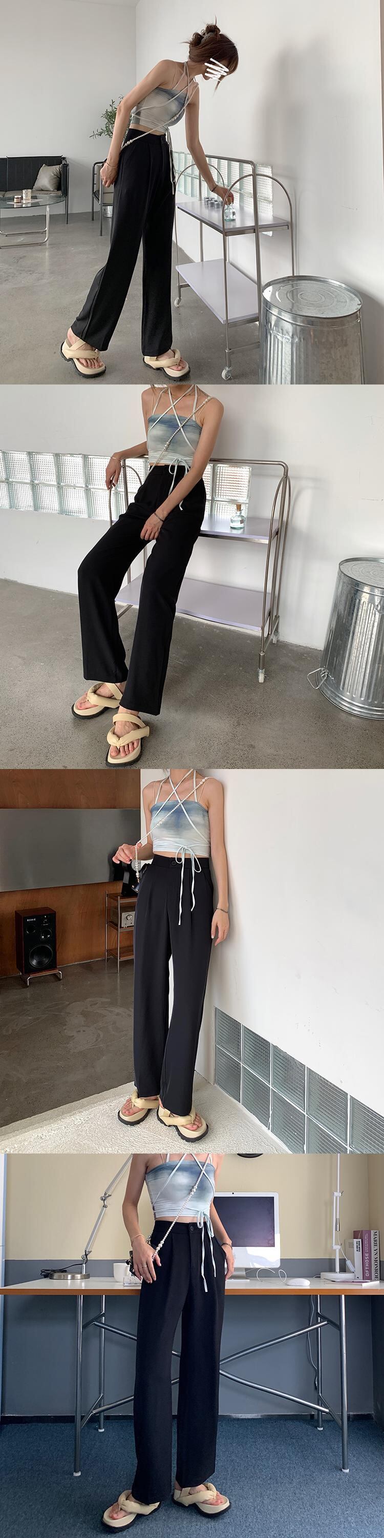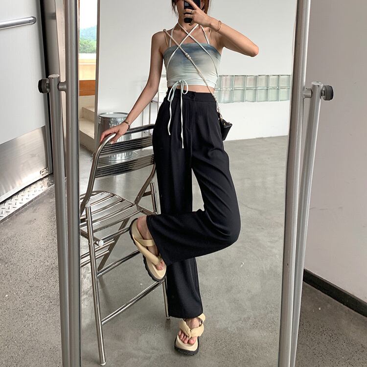 パンツ サマールーズカジュアルハイウェストウェストワイドレッグ 夏物 ワイドパンツ クレセントシティ80869402671