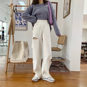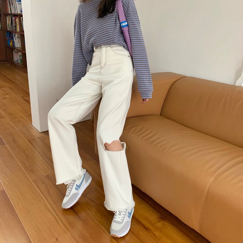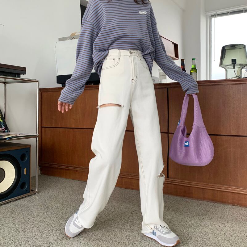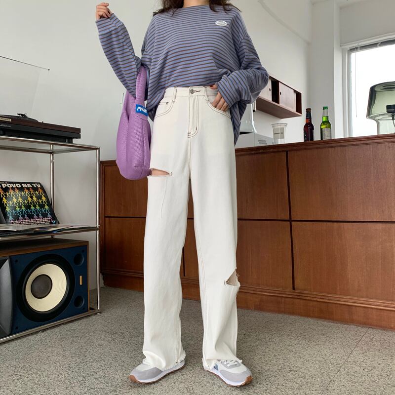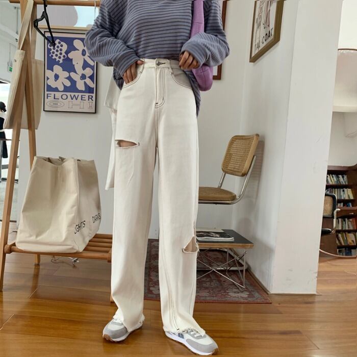 ホワイトジーンズ サマーカジュアルルーズハイウェストスリムパンツ 夏物 クレセントシティ90960982825