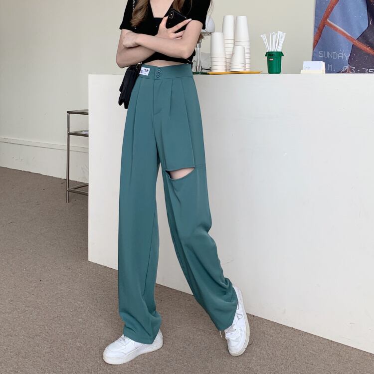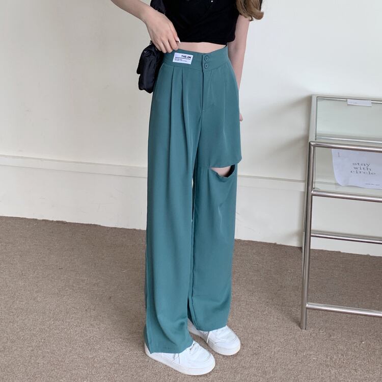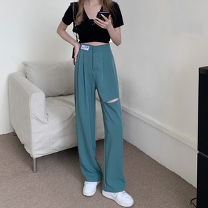 レッドカジュアルパンツ レディースルーズハイウェストウェスト薄手 ストリート クレセントシティ41457125971