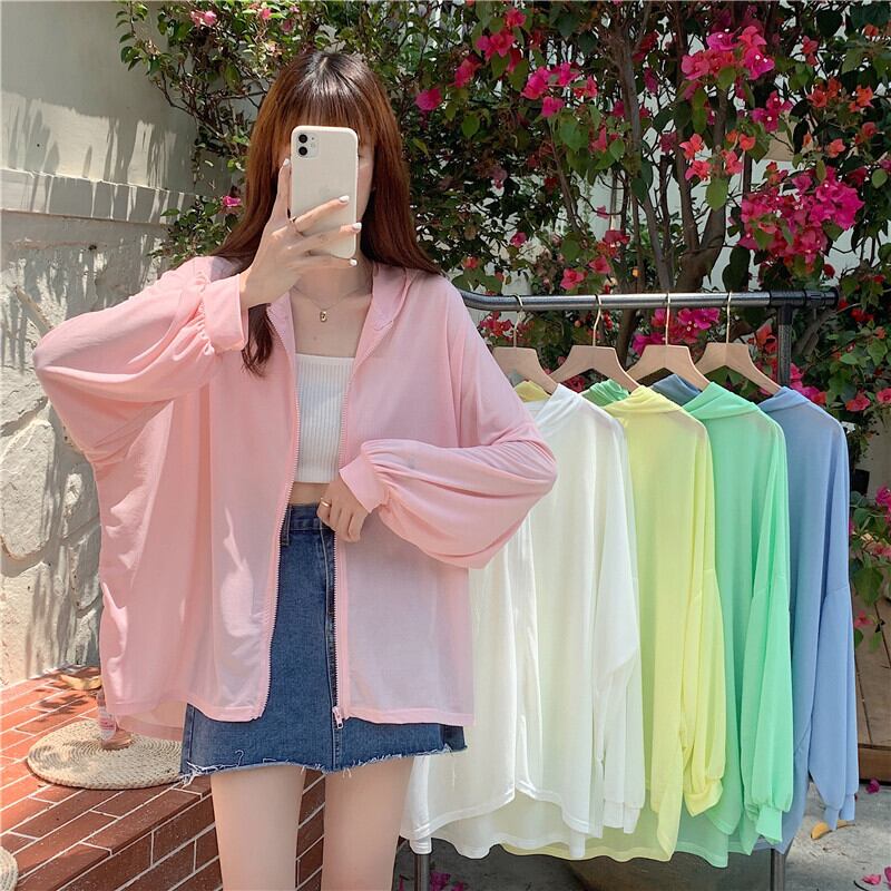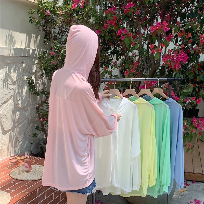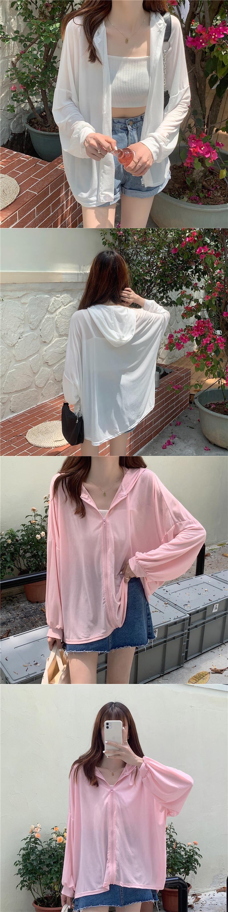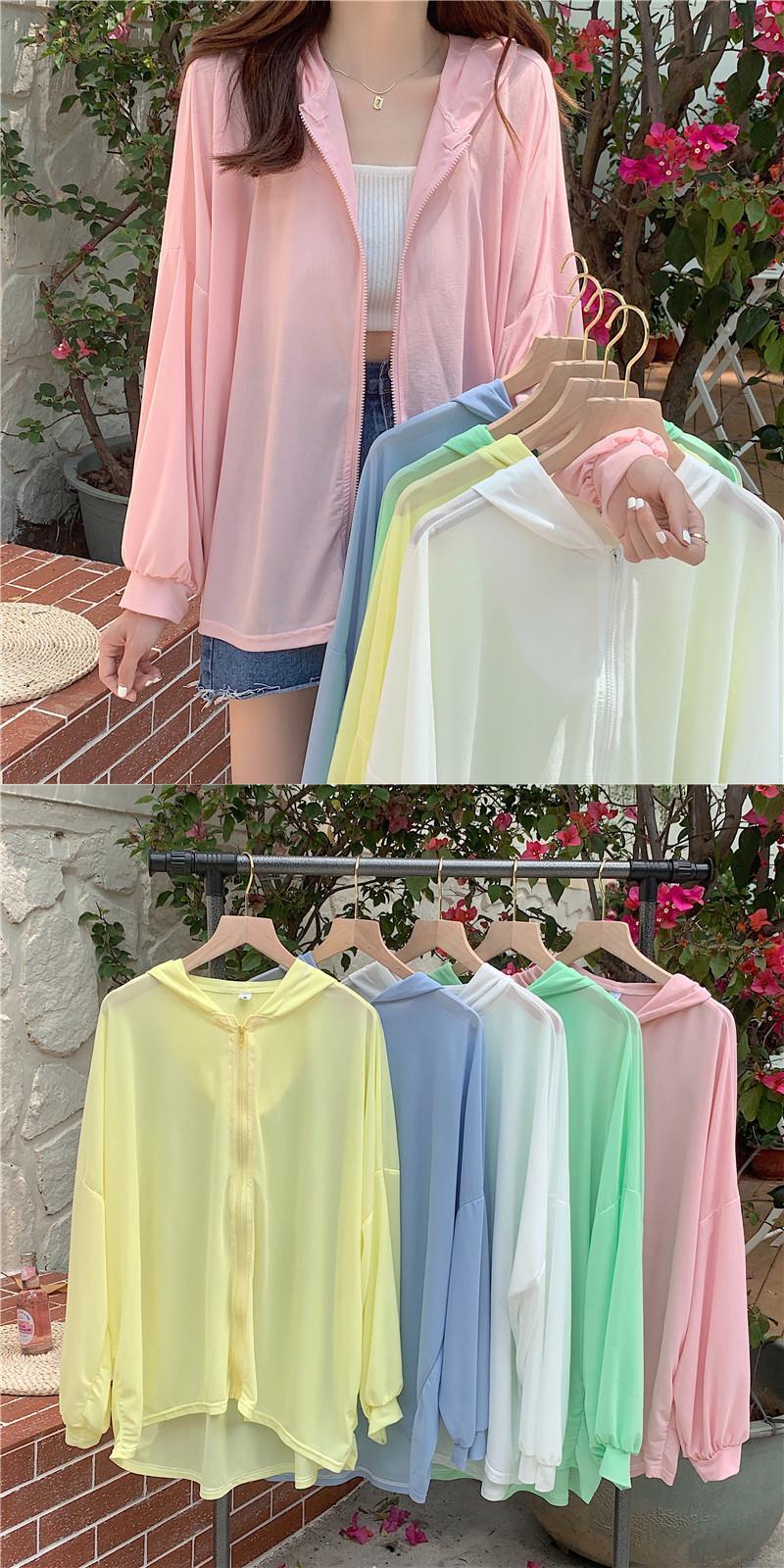 カラー薄手コート サマースタイルルーズフードシャツ ソリッド カーディガントップス ロング レッド 夏物 ソリッドカラー クレセントシティ1579355520