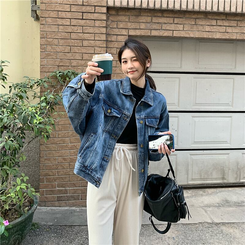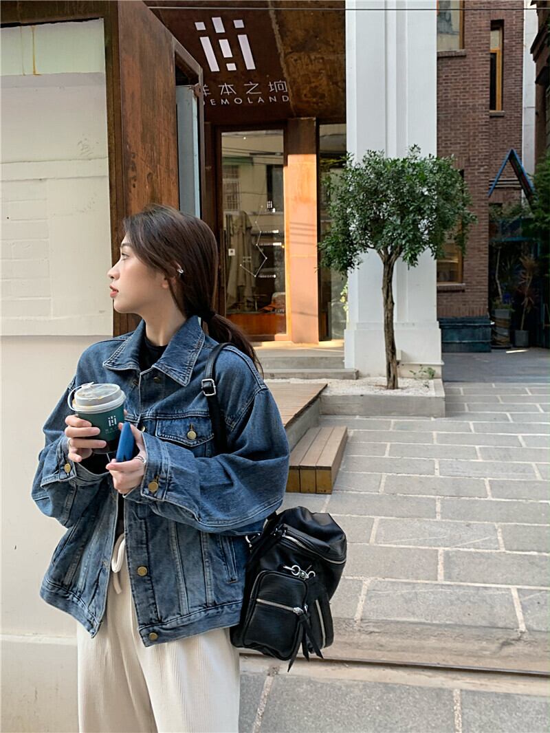 スタンダードジャケット スプリングルーズ薄手カジュアルトップス レッド レトロ 春物 クレセントシティ56748162677