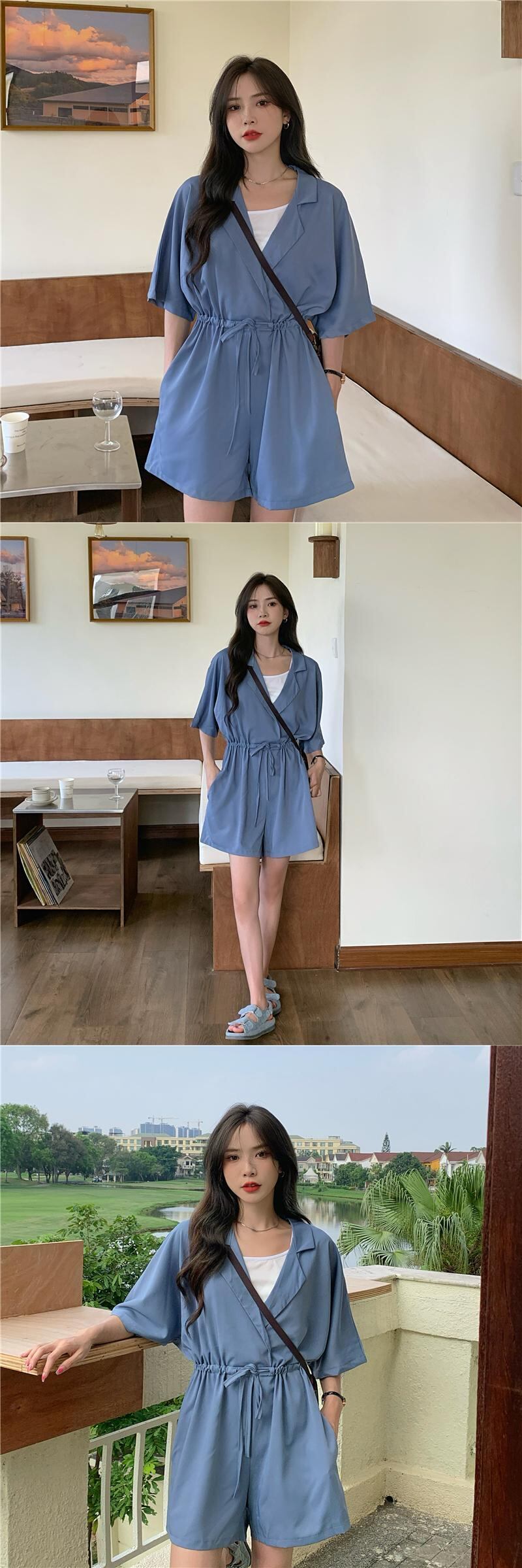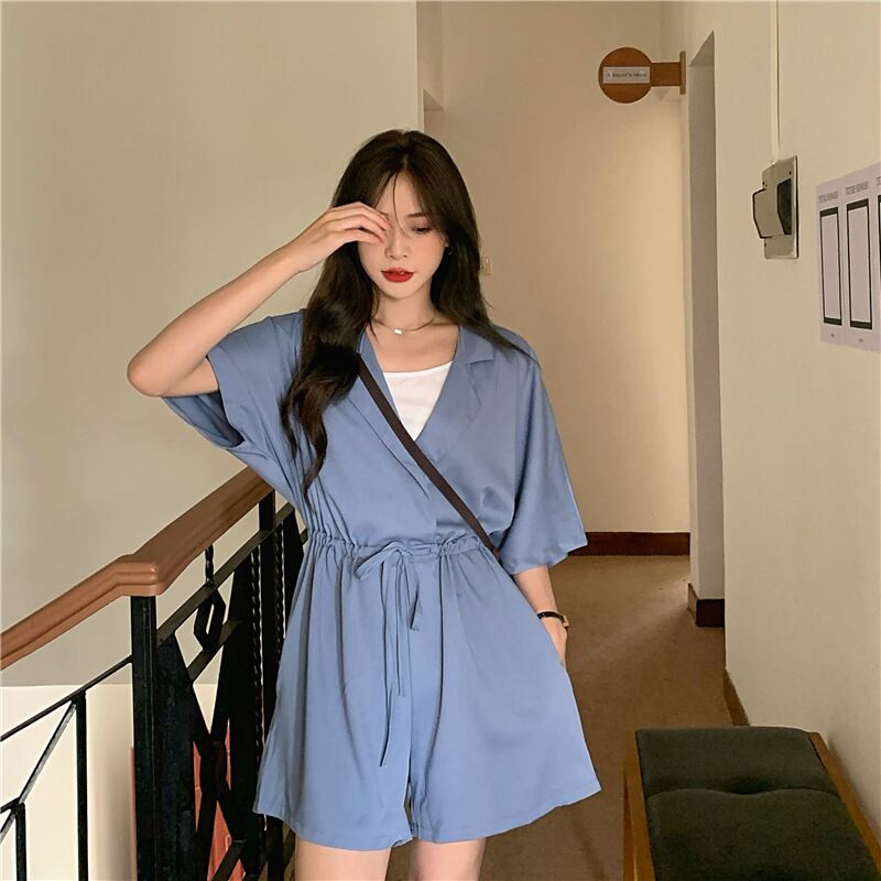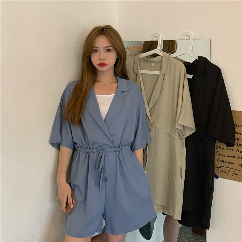 カラージャンプスーツ オールインワン サマーストレッチハイウェストウェストルーズ薄手ショーツ エラスティック 伸縮 夏物 ブルマー クレセントシティ13295920491