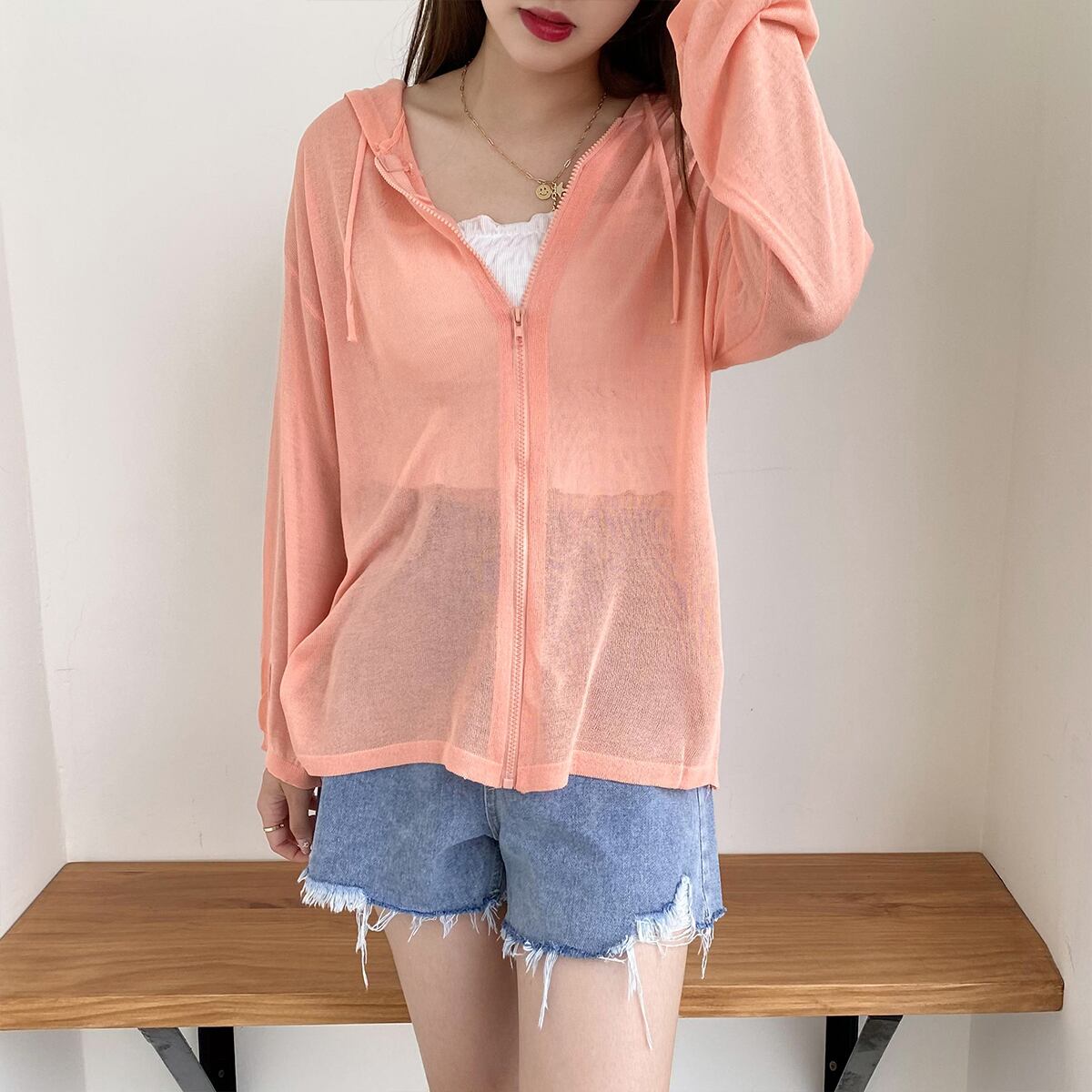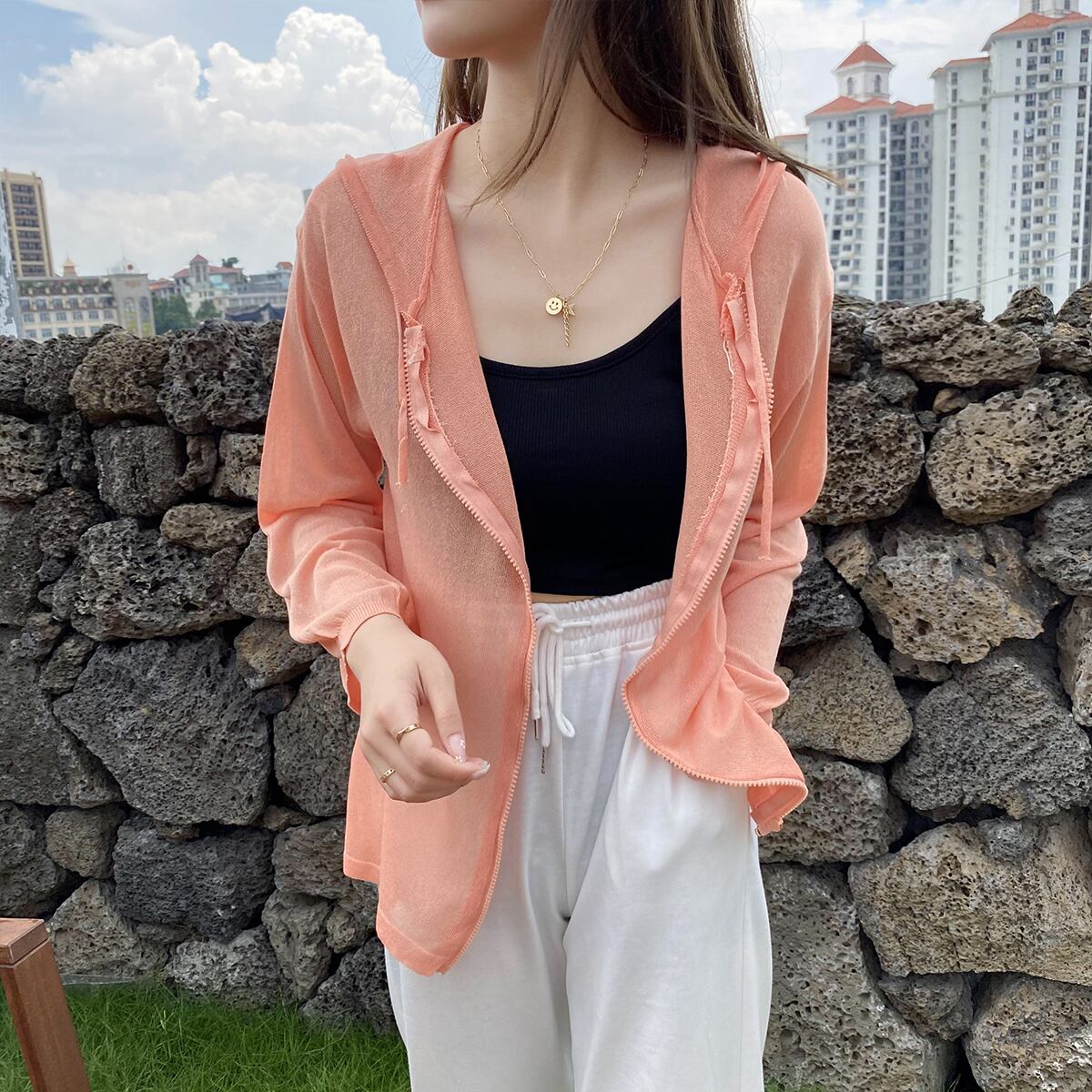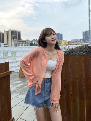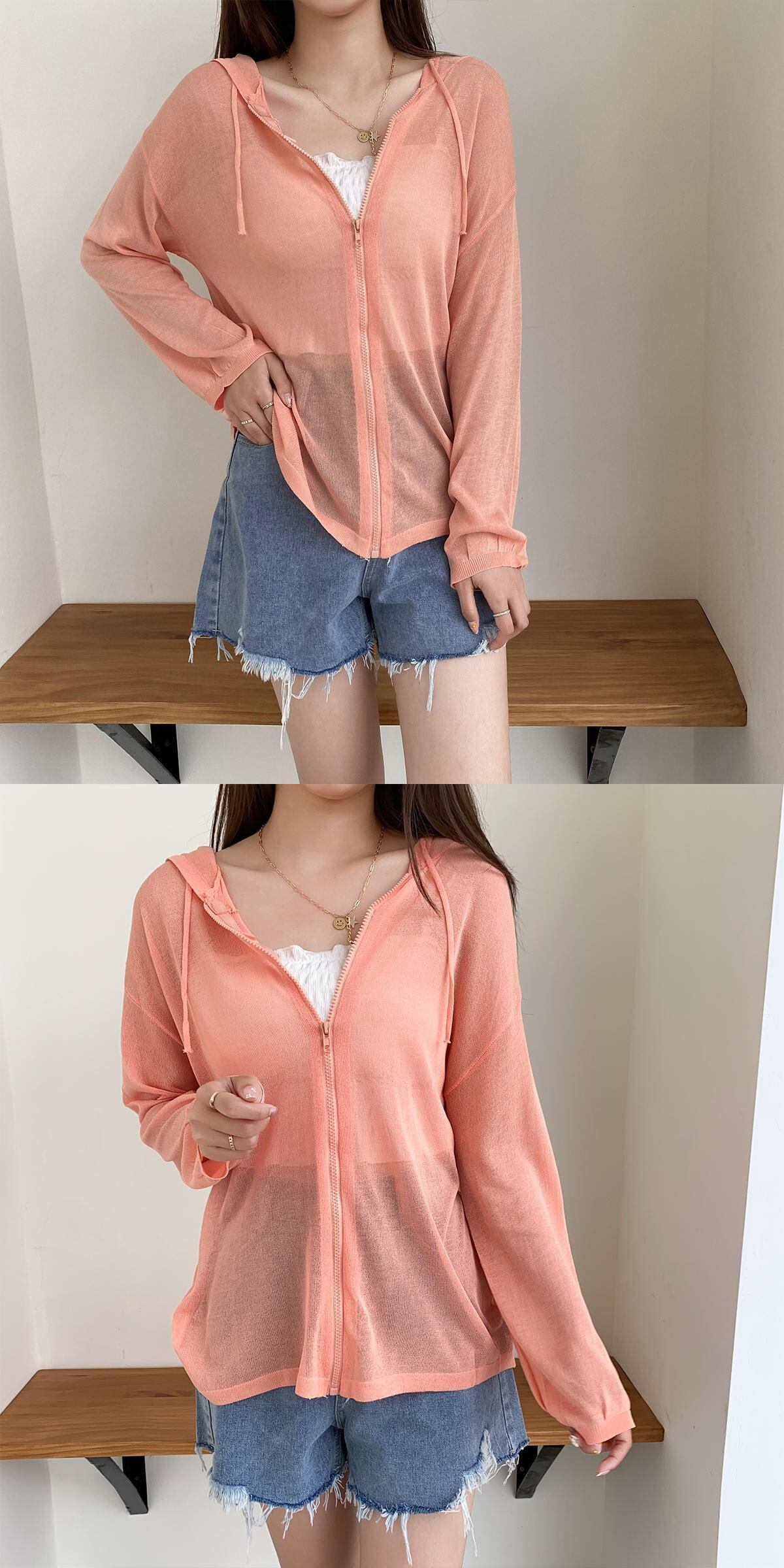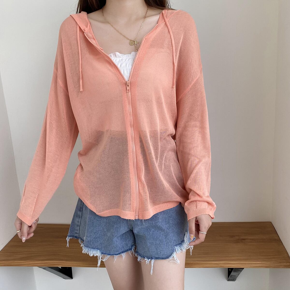 フードシャツ サマールーズカラー薄手カーディガンジャケット 夏物 ピュア クレセントシティ7267526146