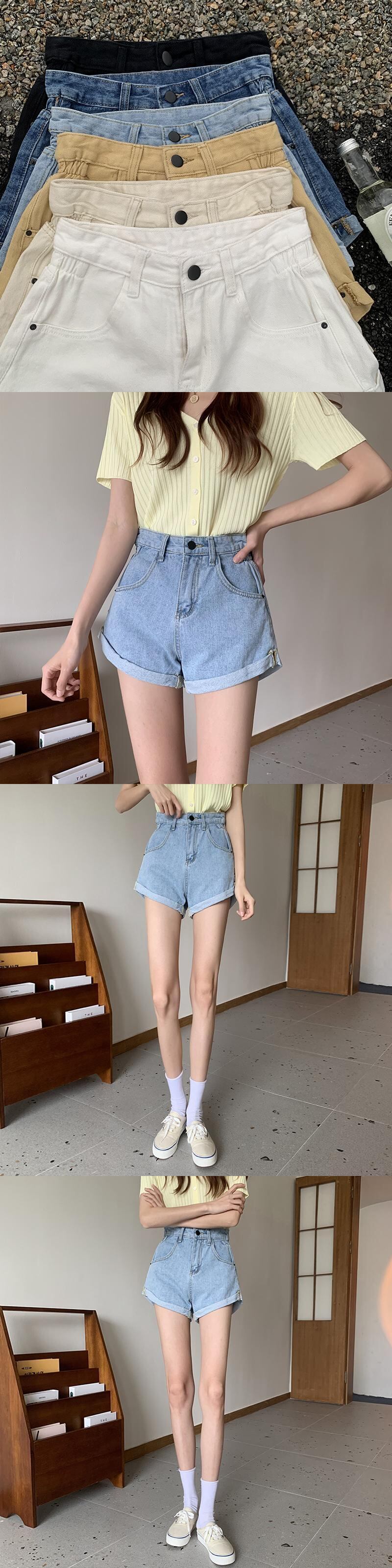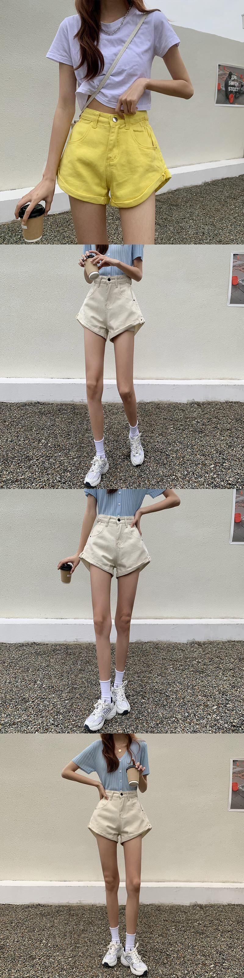 Aラインショーツ サマールーズソリッド カラーハイウェストウェストワイドレッグパンツ 夏物 ブルマー ワイドパンツ ソリッドカラー クレセントシティ57638306543