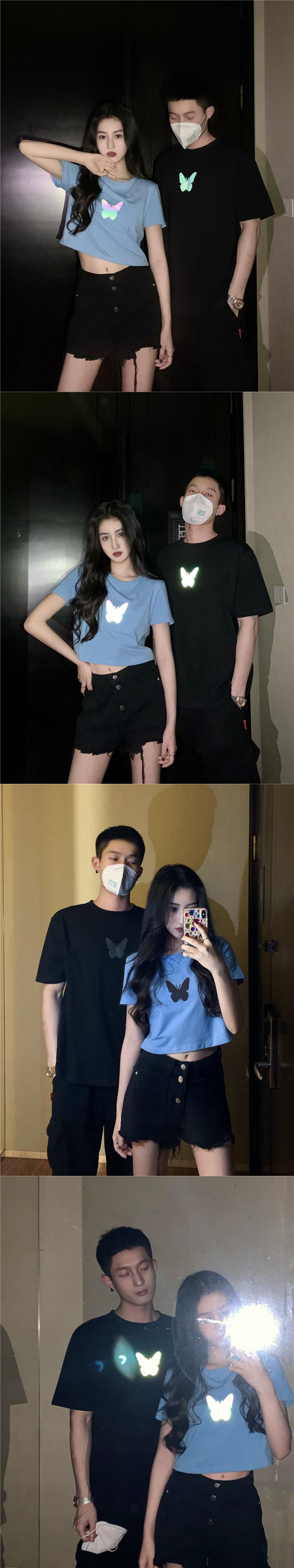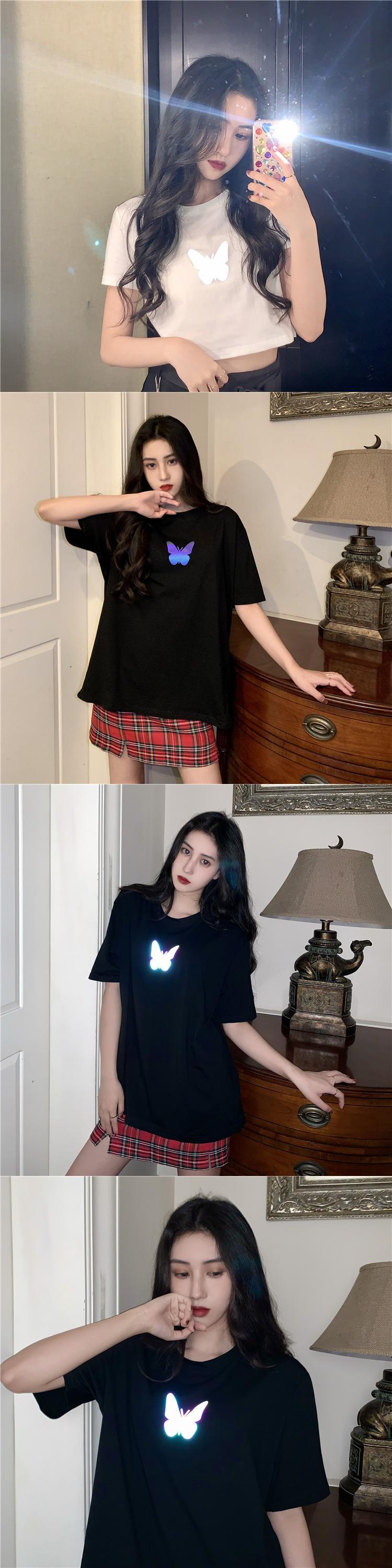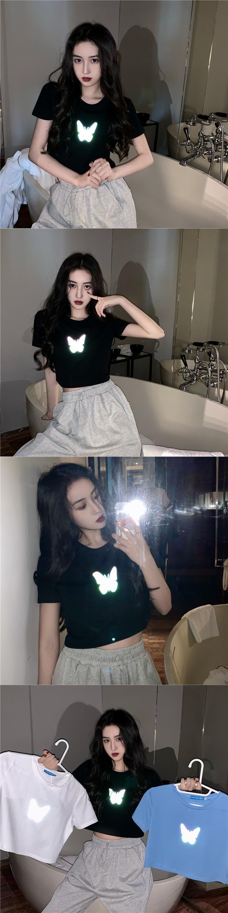 Butterflyデザイン ショートTシャツ レディースサマードレス レッドトップス 夏物 クレセントシティ75131290038