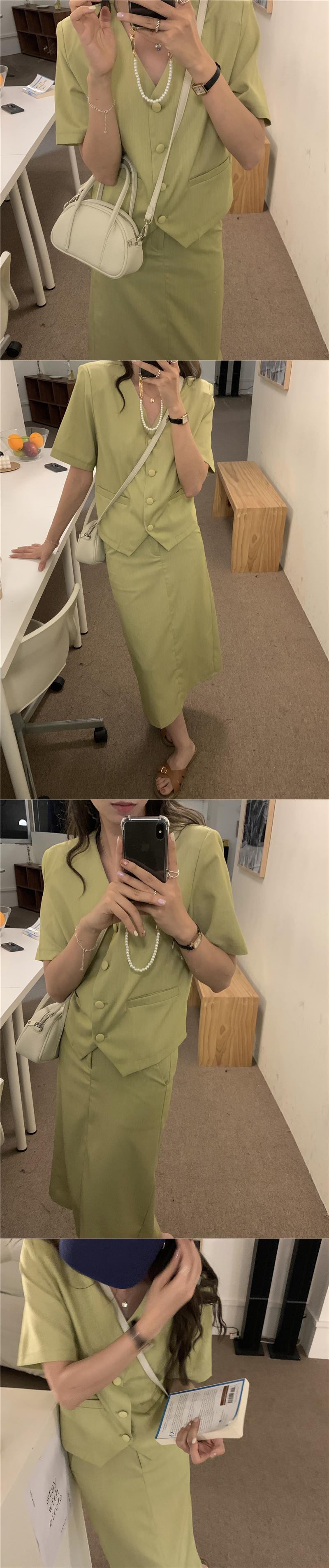 色:黒スカート,アプリコットスカート,緑のスカート,ブラックトップ,アプリコットトップ,グリーンジャケット