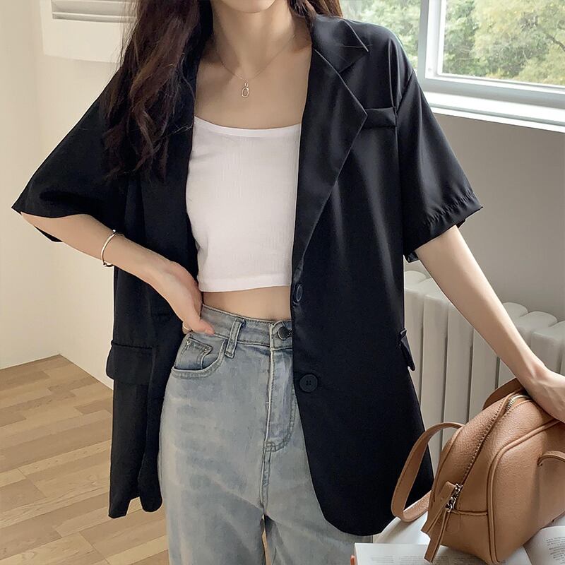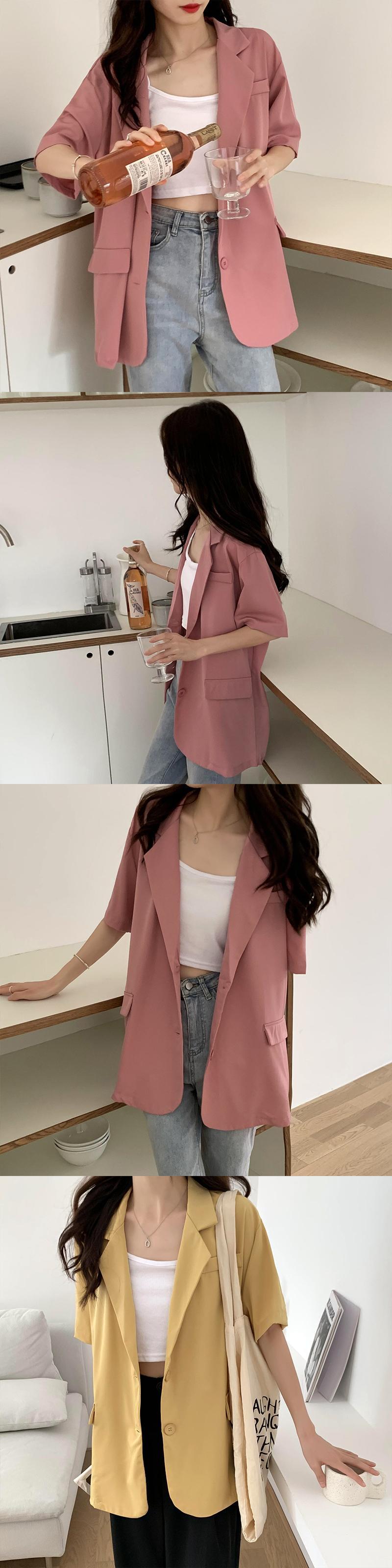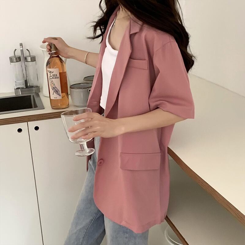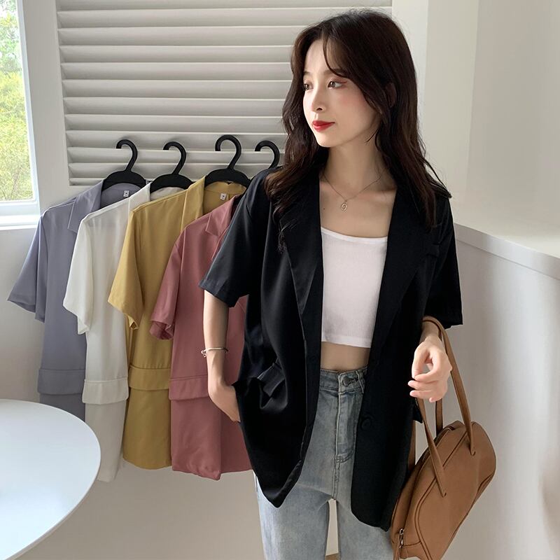 シフォンジャケット サマー薄手ルーズソリッド カラー半袖スリーブトップス ショート ハーフスリーブ 夏物 ソリッドカラー クレセントシティ28242054723