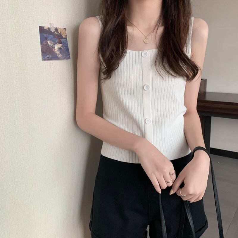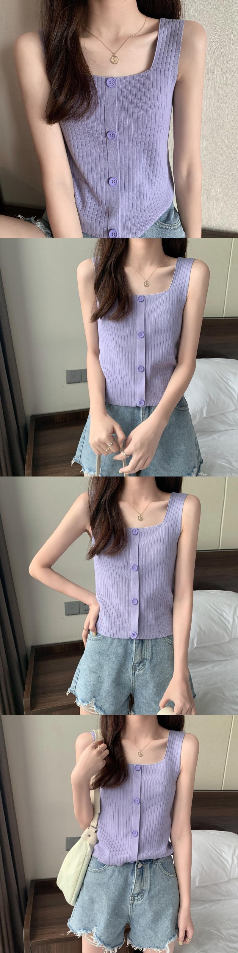 ニットサマースリムノースリーブショートソリッド カラートップス 夏物 ソリッドカラー クレセントシティ82111454196