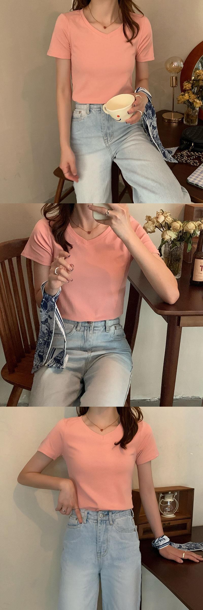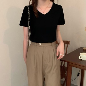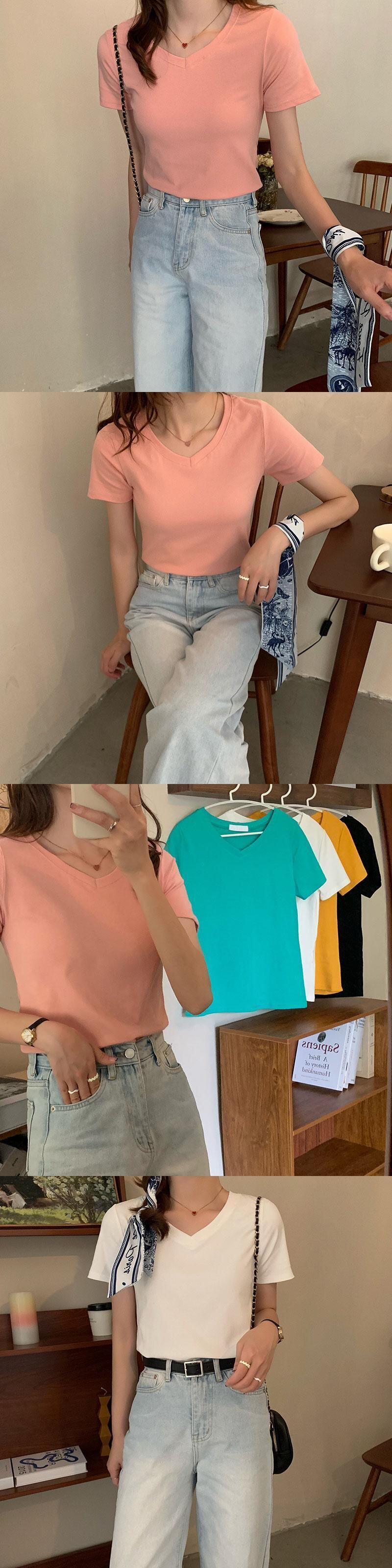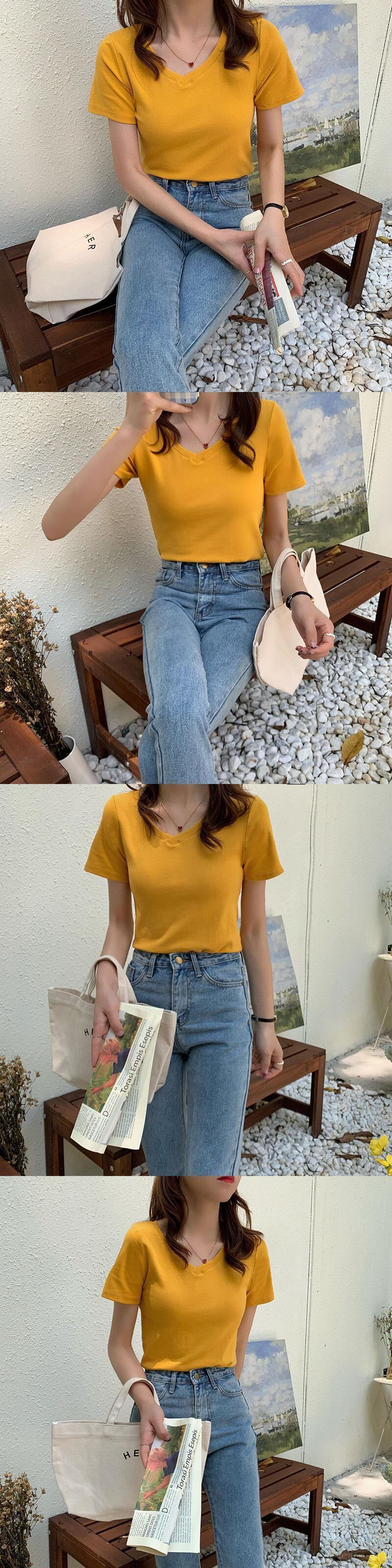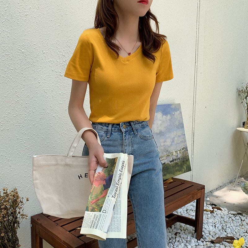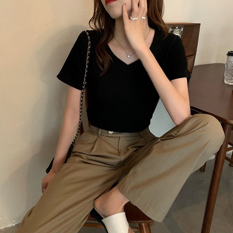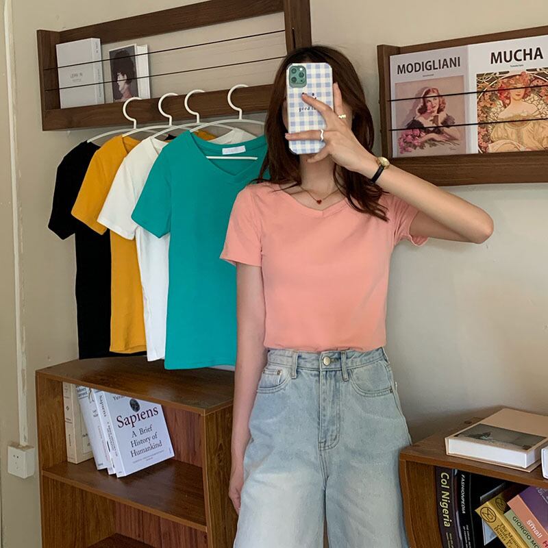 ホワイトTシャツ サマースタイル薄手ソリッド カラーVネックトップス 夏物 ソリッドカラー クレセントシティ50757632609