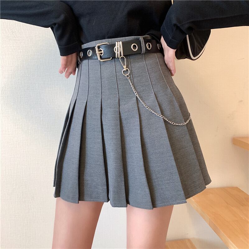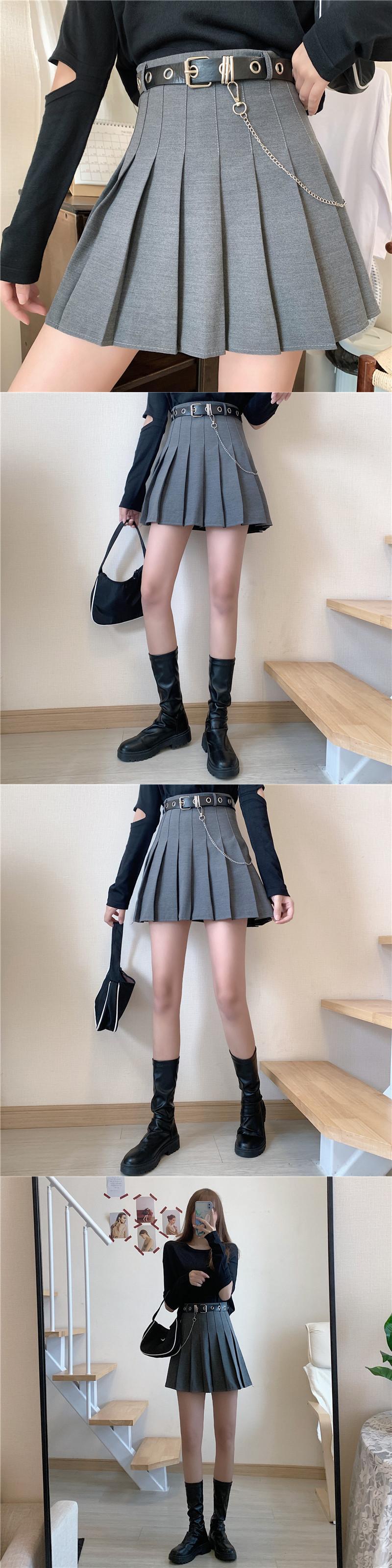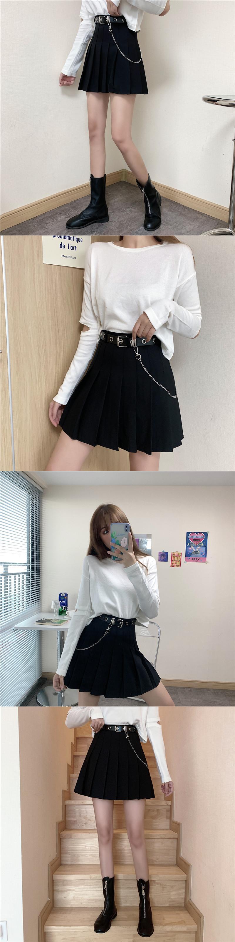 ブラックスカート スプリングレッドハイウェストウェストAラインショート薄手プリーツ 春物 クレセントシティ46453650081