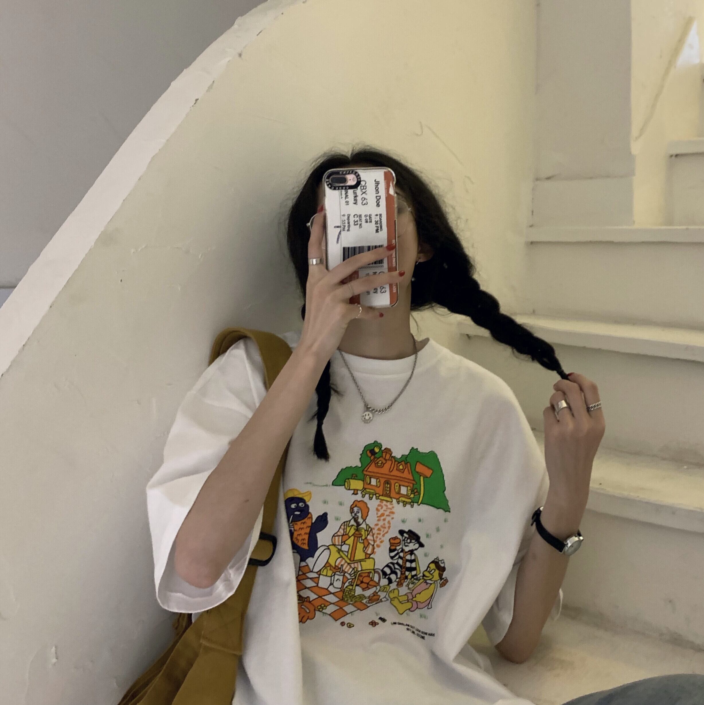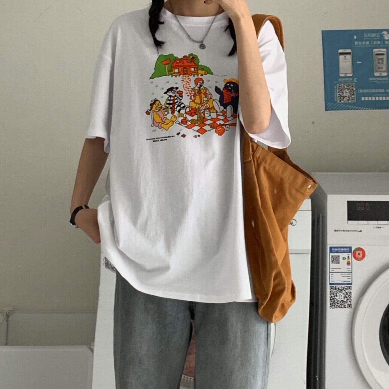 レッドTシャツ サマープリント柄ルーズ薄手ラウンドネックトップス 夏物 Oネック クレセントシティ72738545541