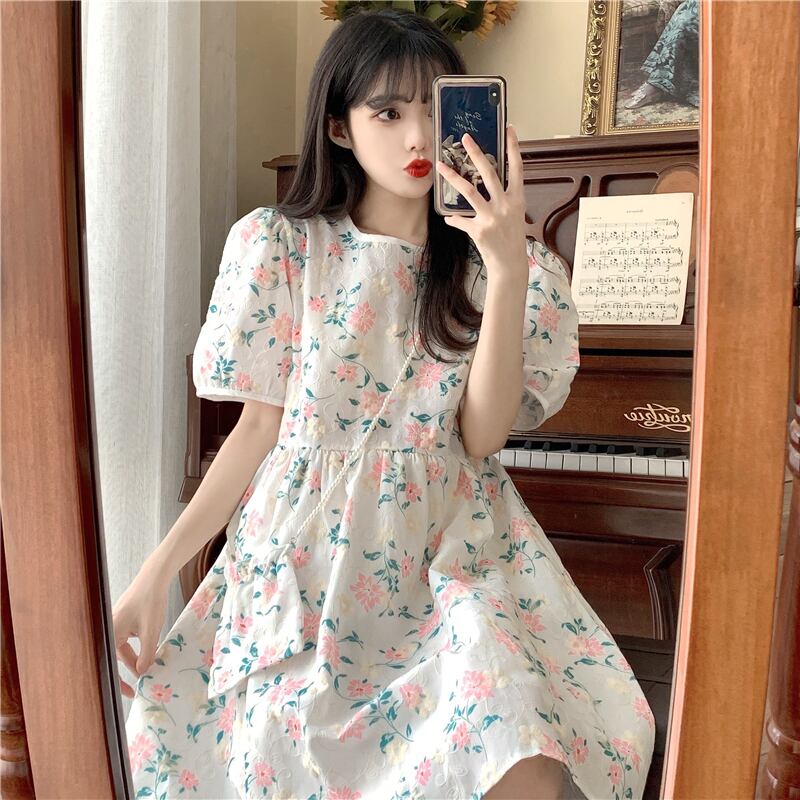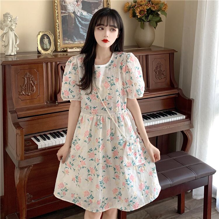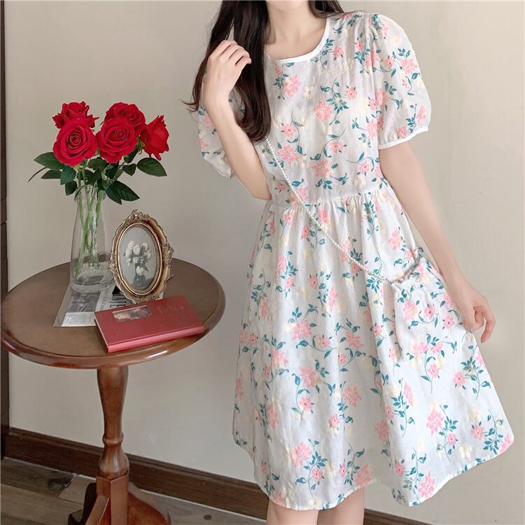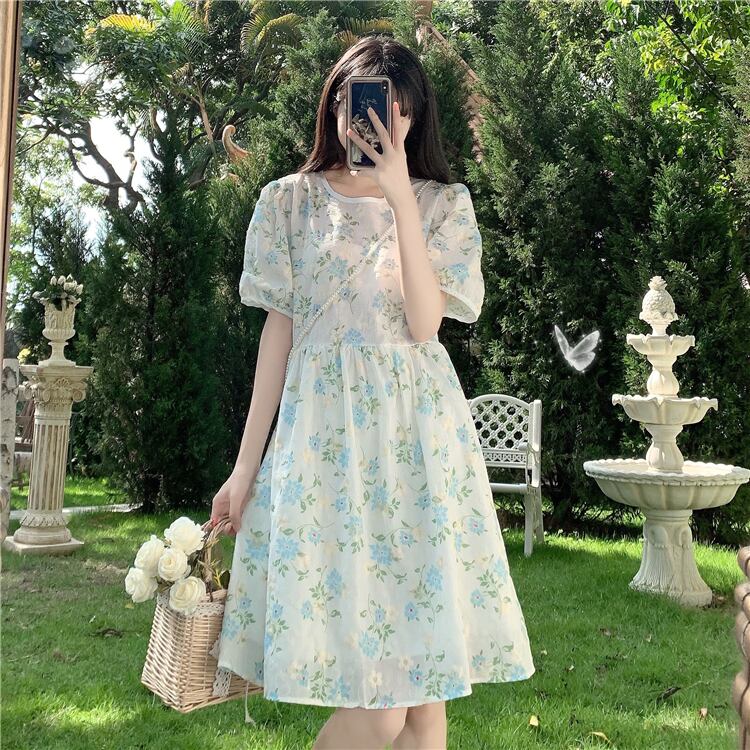 サマーフローラルハイウェストAラインスカート ロング 大人ガーリー スウィート キュート カジュアル 夏物 花柄 クレセントシティ75782457116