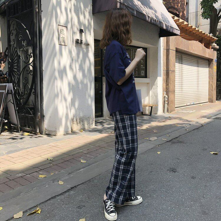 スタンダード格子柄カジュアルパンツ オータムルーズ薄手ハイウェストウェスト レトロ 秋物 クレセントシティ80087679599