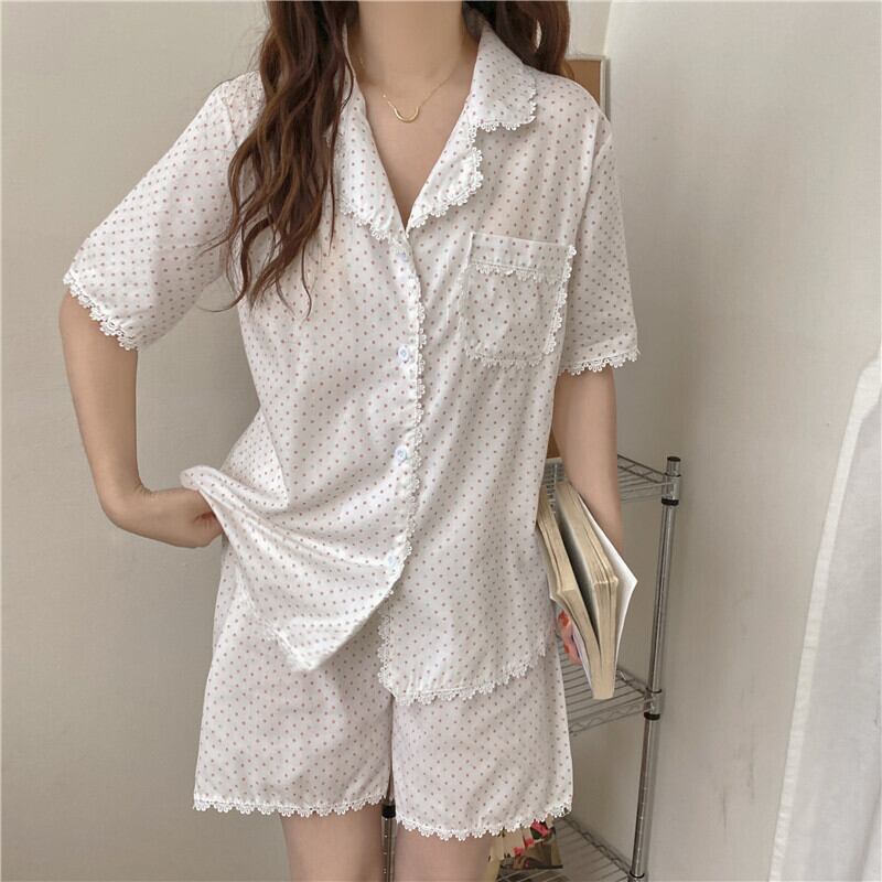 レース水玉サマースタイルルーズカジュアルショーツ 大人ガーリー スウィート キュート 夏物 ブルマー クレセントシティ97408903691