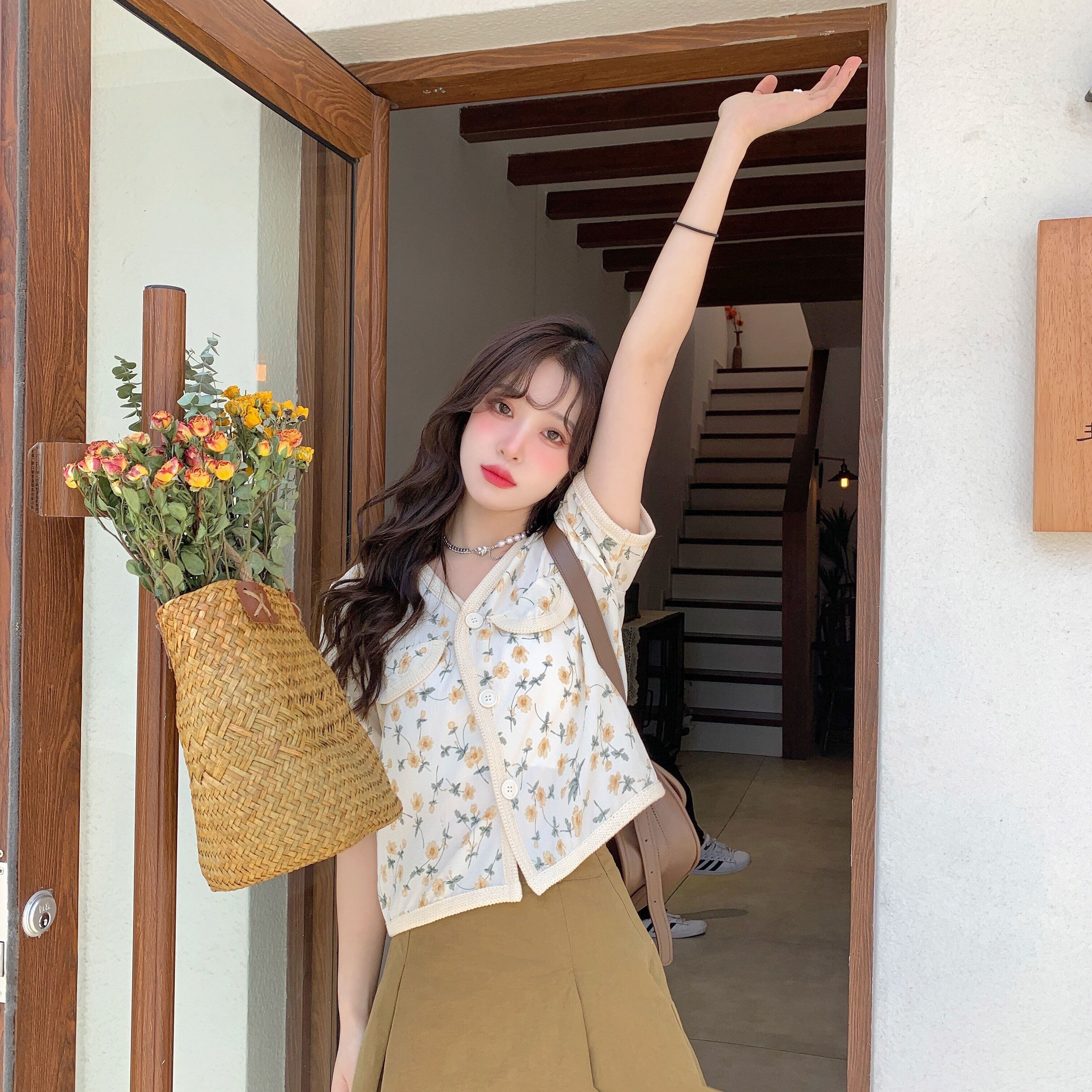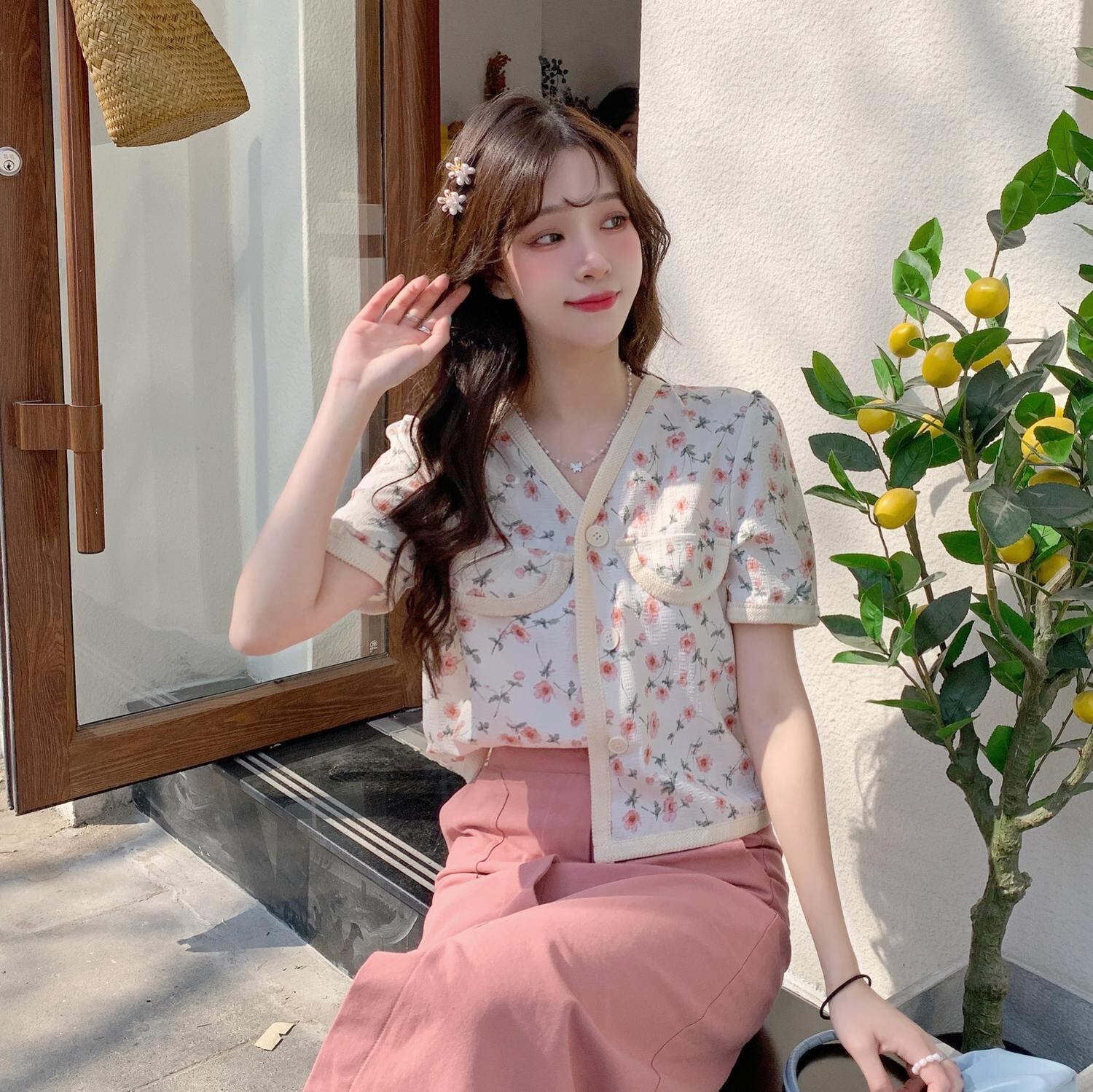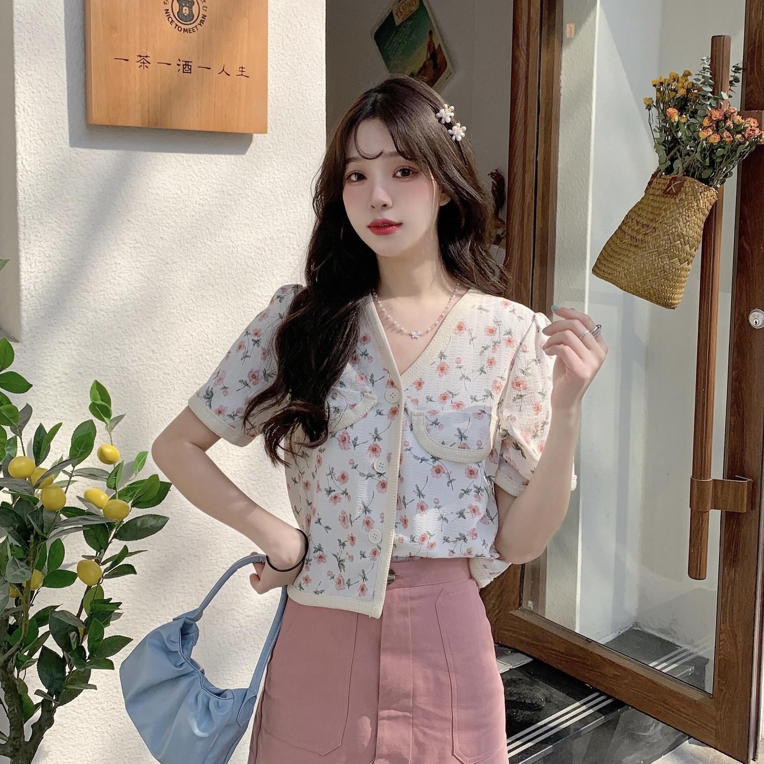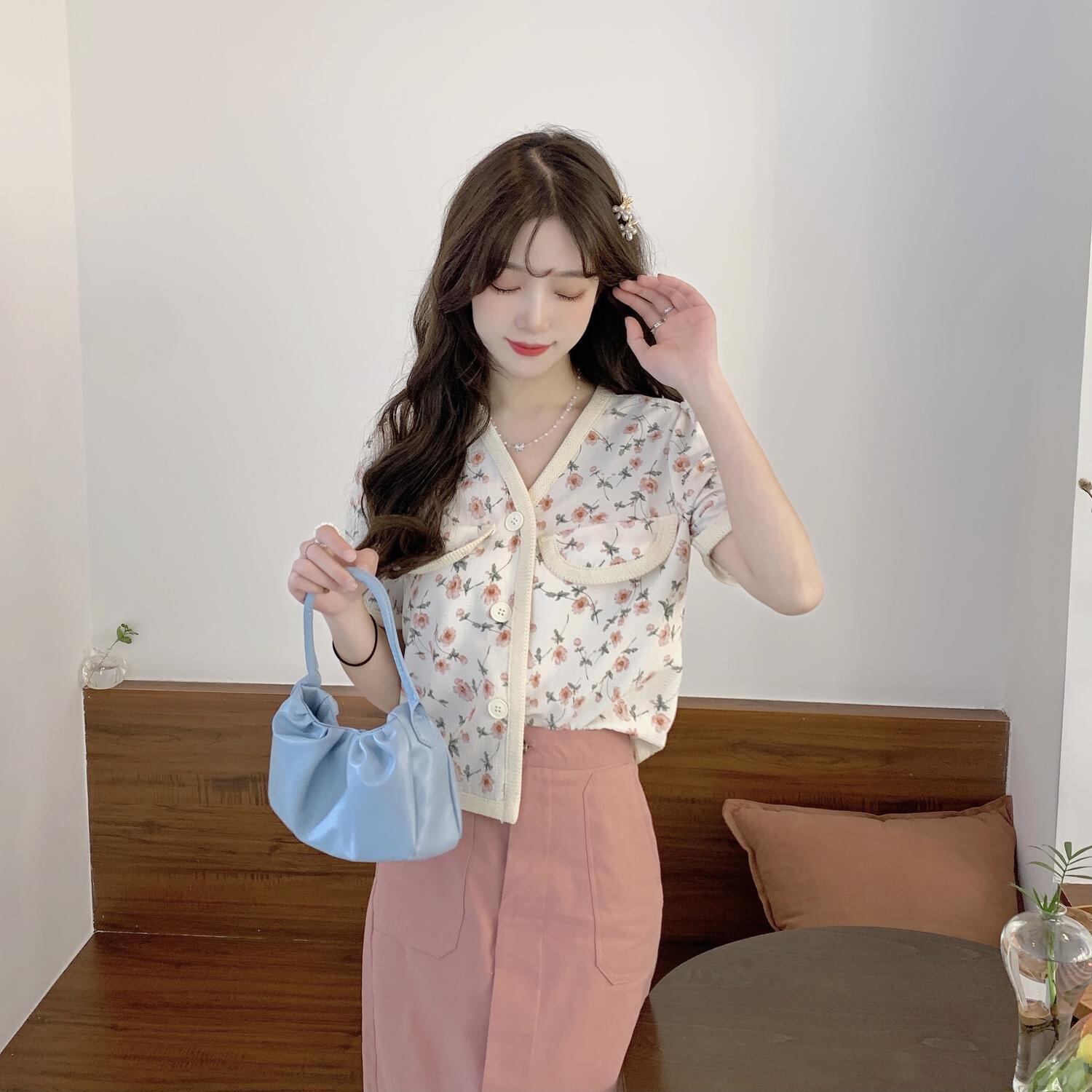 フローラルシャツ サマーVネックルーズトップス 夏物 花柄 クレセントシティ24718606315