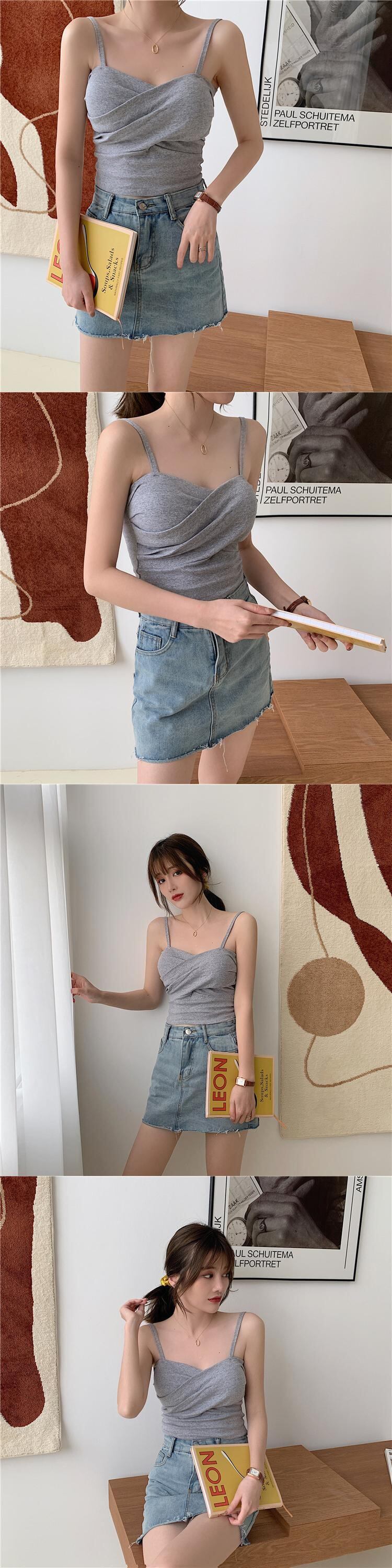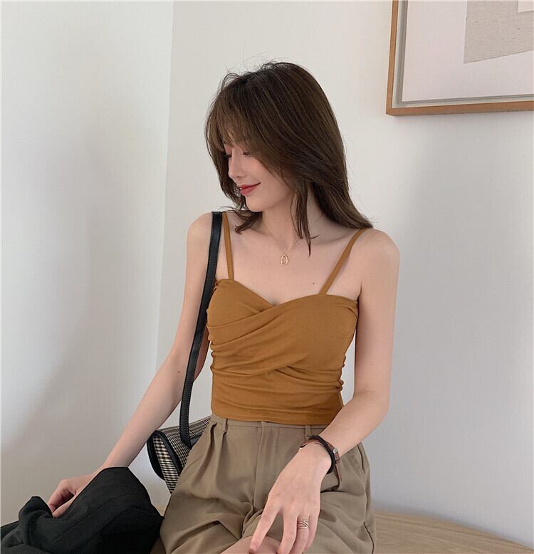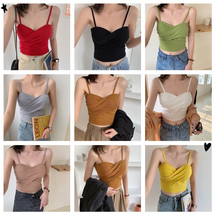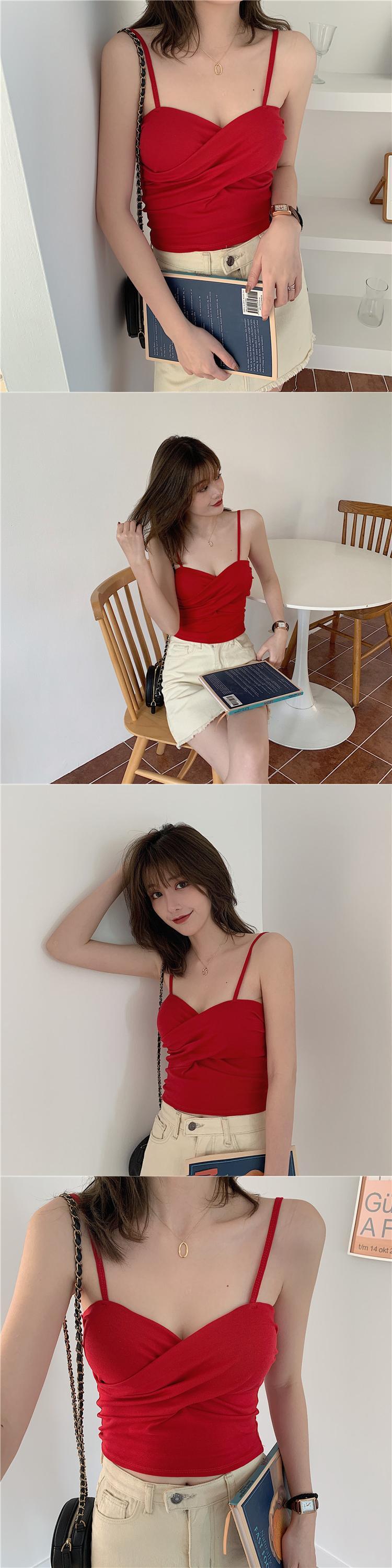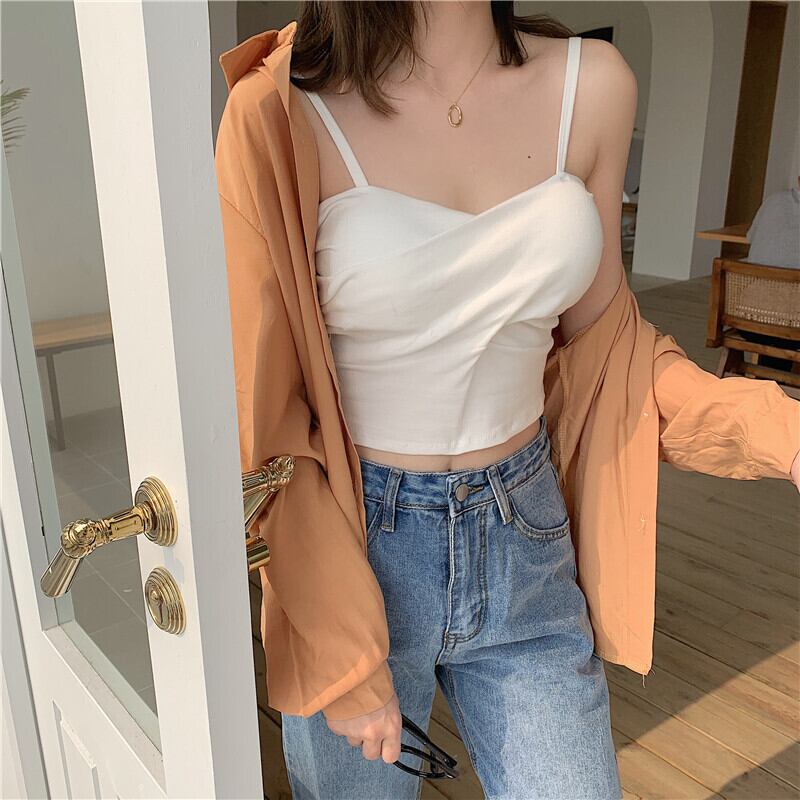 ショートクロススプリングソリッド カラースリムトップス 春物 ソリッドカラー クレセントシティ72330970312
