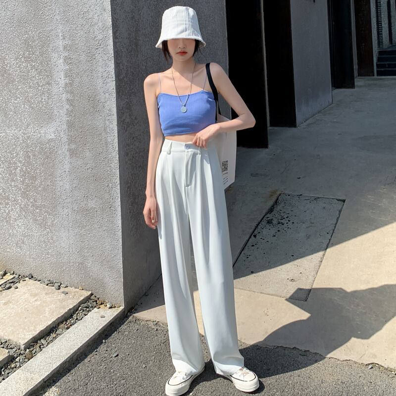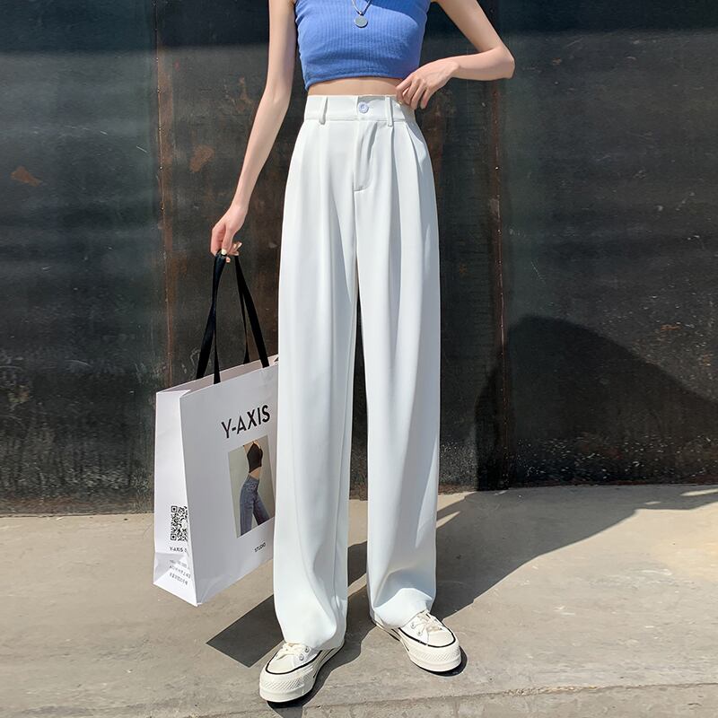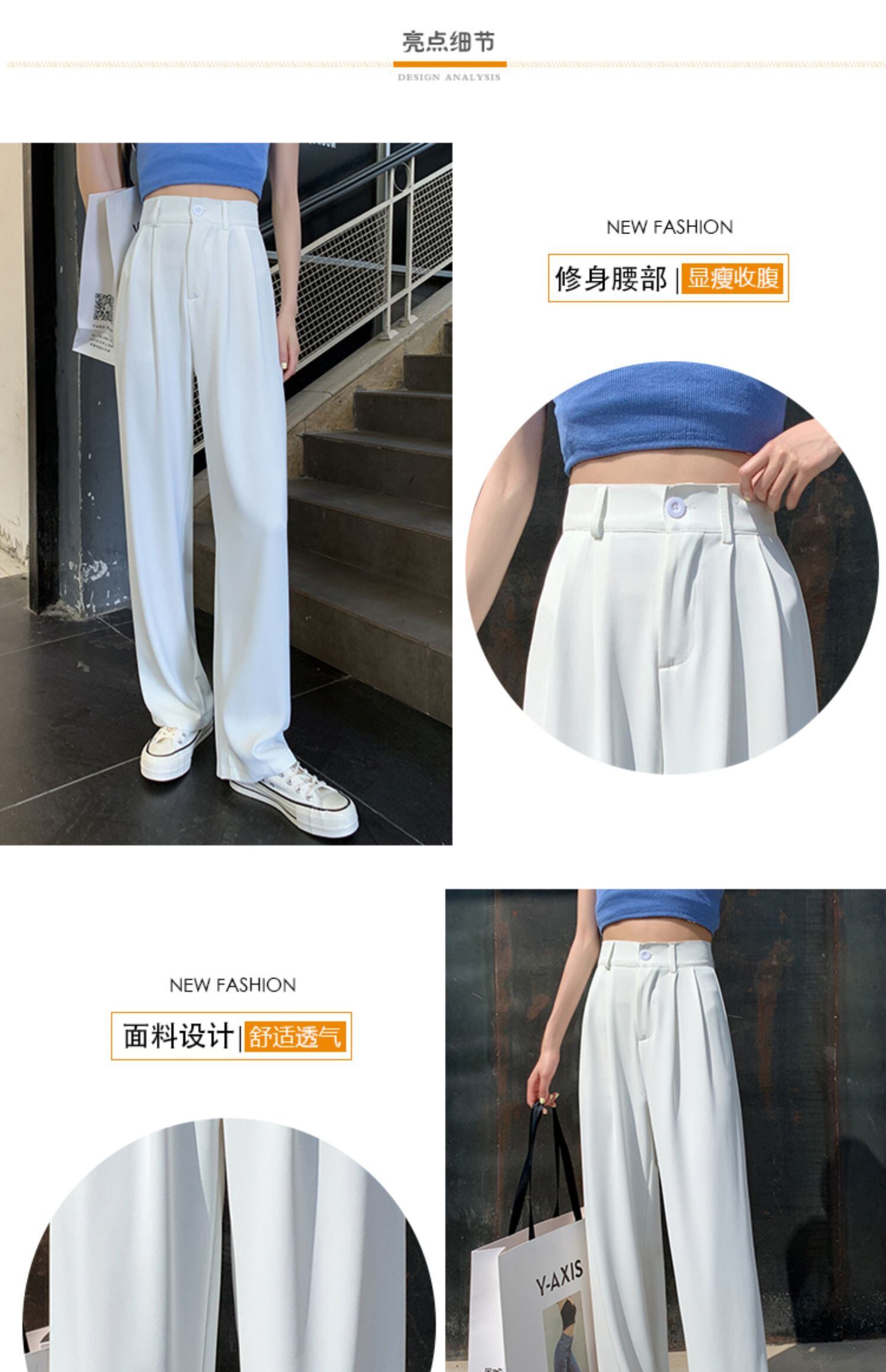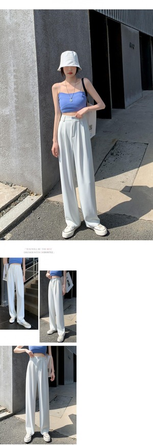 サマーホワイトパンツ レディースルーズハイウェストウェストカジュアル 夏物 クレセントシティ38062410336