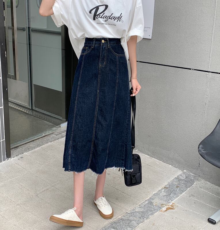 スカート サマースタンダードルーズハイウェストウェストクロスAライン レトロ 夏物 クレセントシティ82246086125