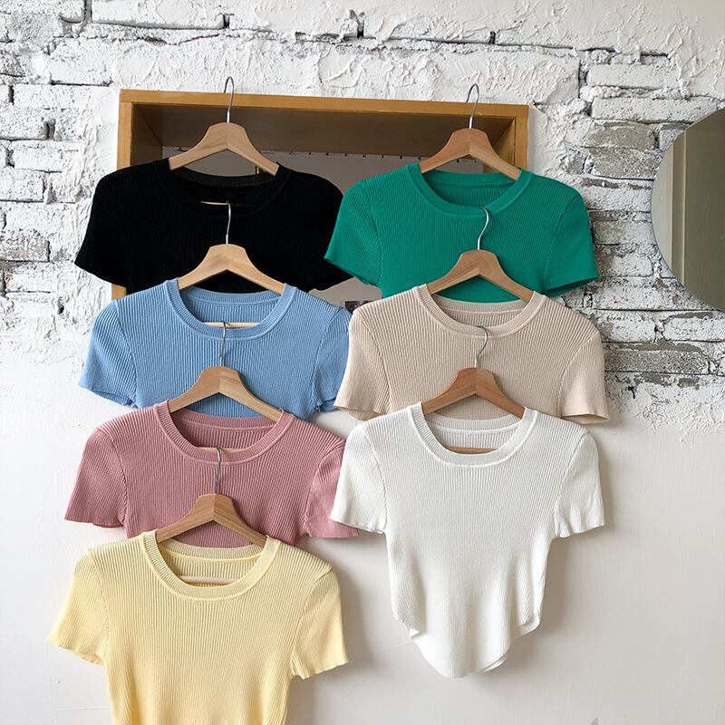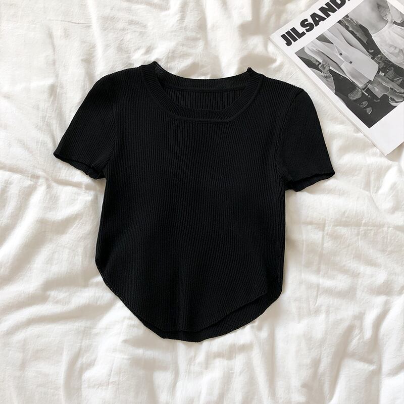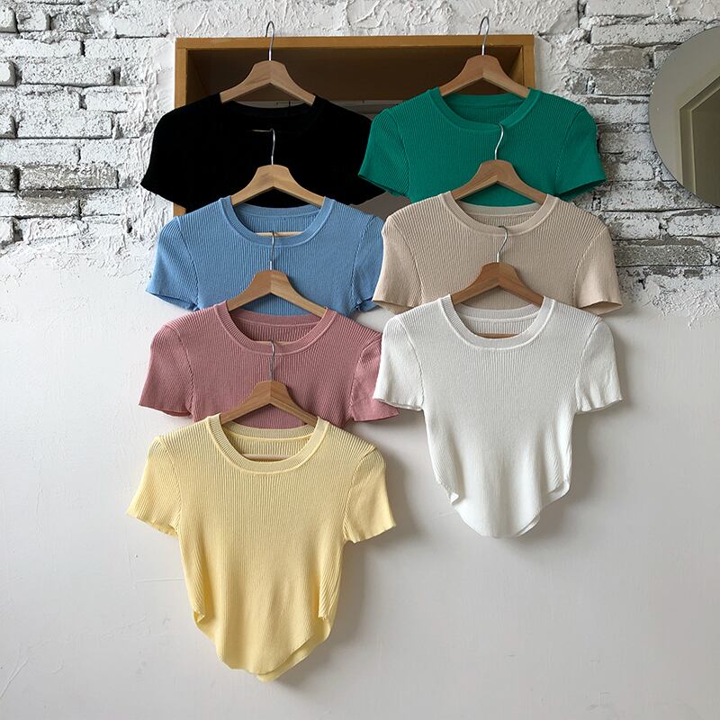 ショートセーター レディースサマー薄手ソリッド カラートップス 夏物 ソリッドカラー クレセントシティ80291354607