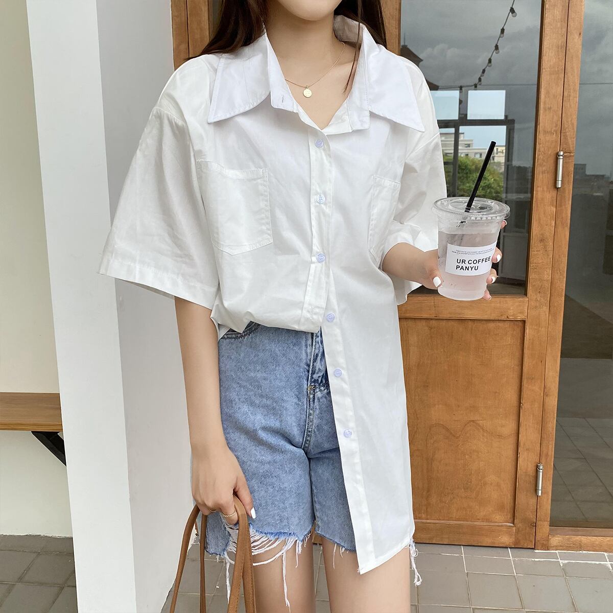 ルーズソリッド カラーシャツ レディースサマートップス 夏物 ソリッドカラー クレセントシティ93646867331