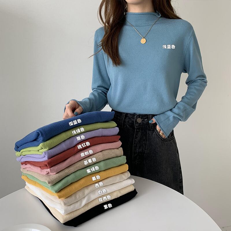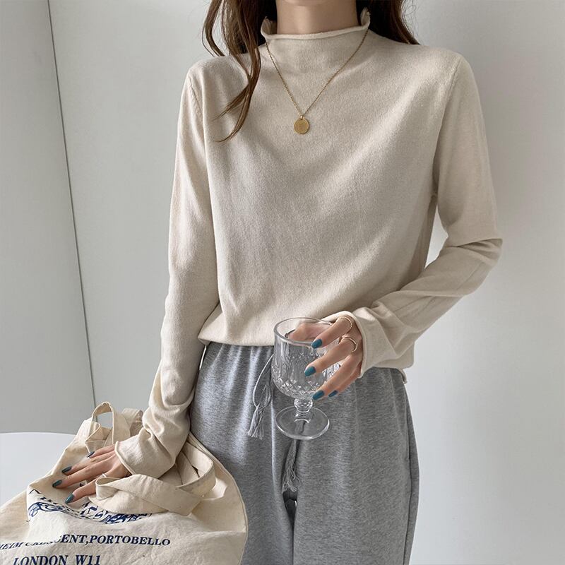 カラーシャツ レディースオータムウィンタースタイルスリムニットトップス ロング 秋物 冬物 クレセントシティ1471585701