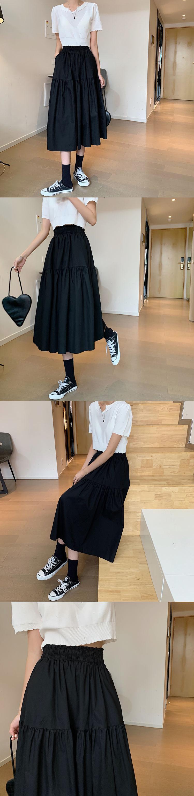 スカート サマーハイウェスト薄手Aラインクロス 夏物 ステッチ クレセントシティ69820407240
