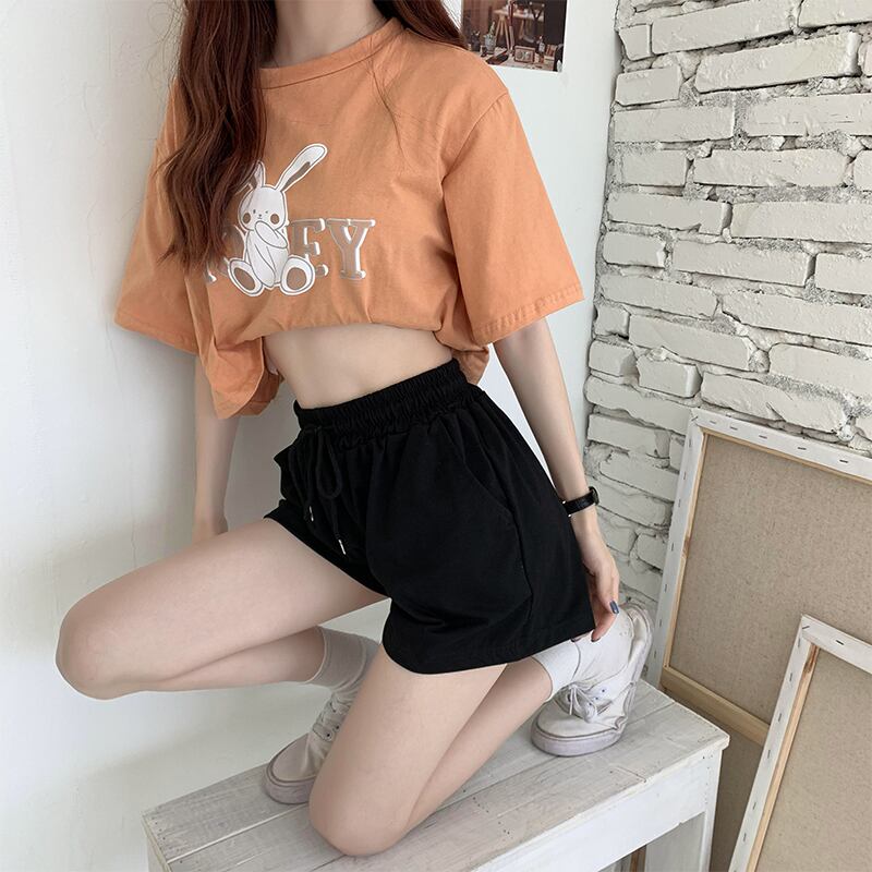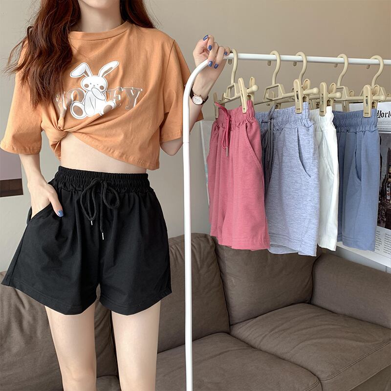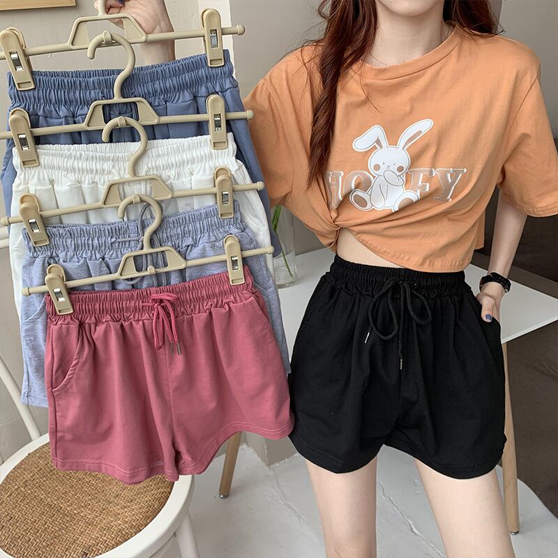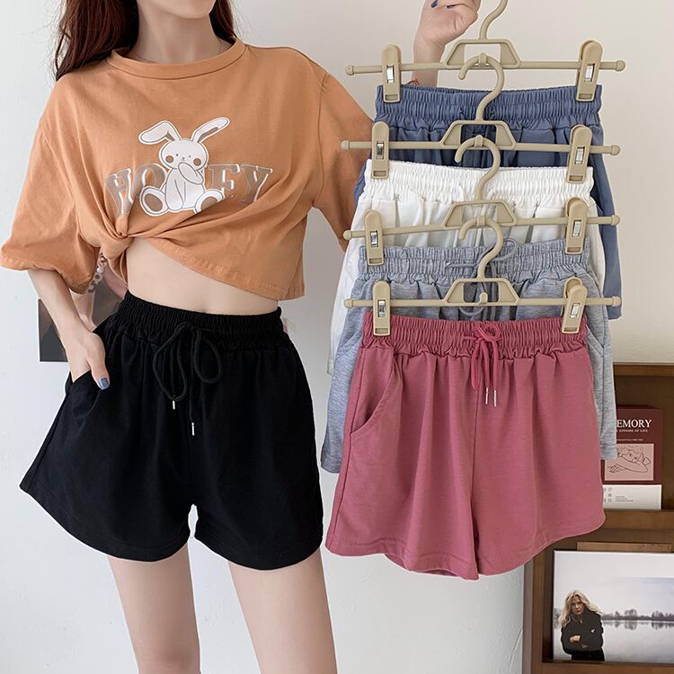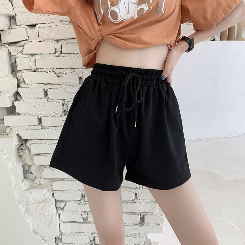 ストレッチウェストパンツ サマールーズハイウェスト薄手Aラインショーツ レース エラスティック 伸縮 夏物 ブルマー レースアップ クレセントシティ41758282238